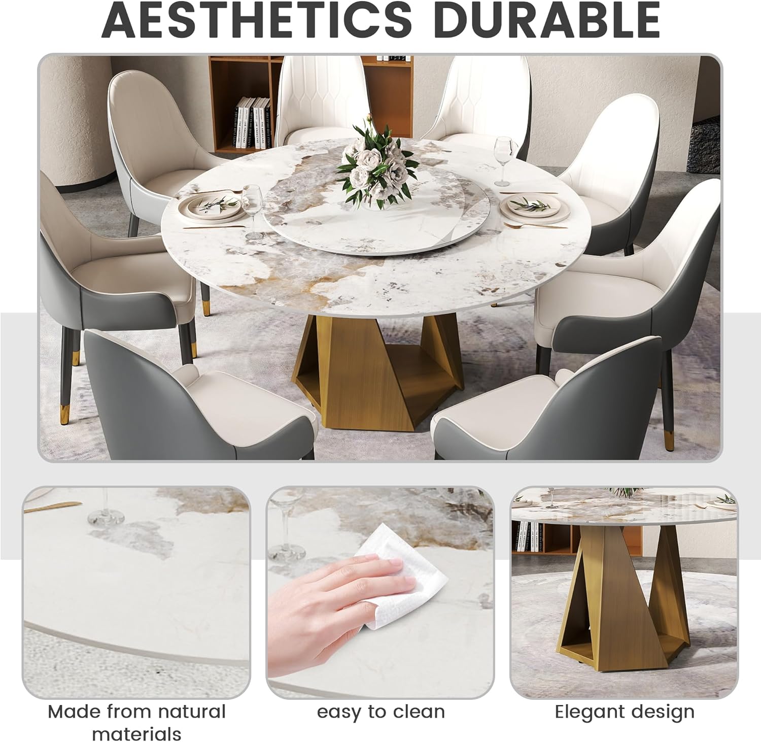 - 【Pandora Simple Appearance】This modern round table is made of artificial stone, and it is made into a perfect dining table with exquisite craftsmanship, which can accommodate 8 people. The hollowed-out base adds a touch of medieval simplicity to this table.