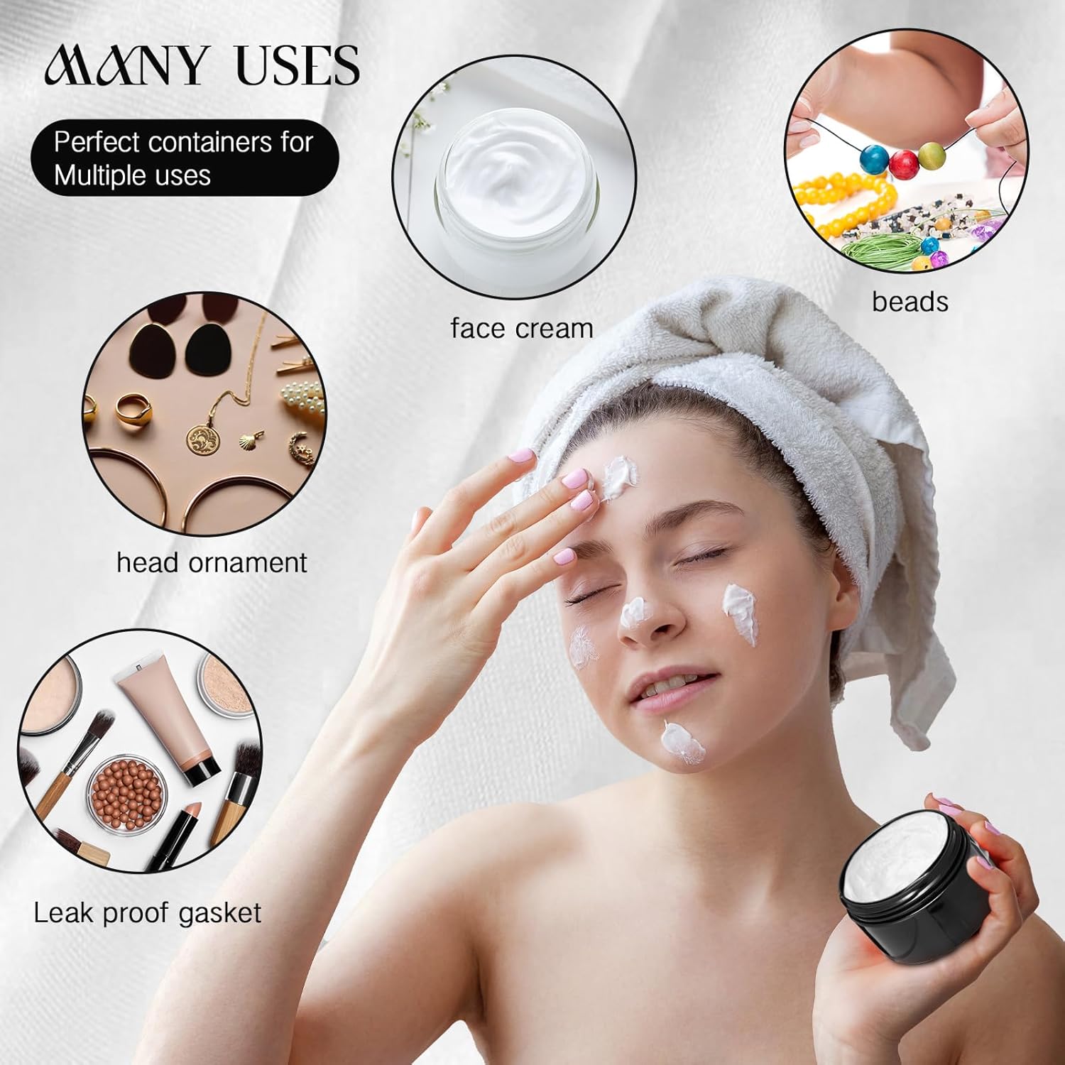 SATINIOR 6 Pack 1 oz Plastic Jars Containers with Lids Wide-mouth Refillable Leakproof Reusable Round Empty Jars for Travel Cosmetic Dry Food Spice Cookie Candy Home Kitchen Organizing(Black)