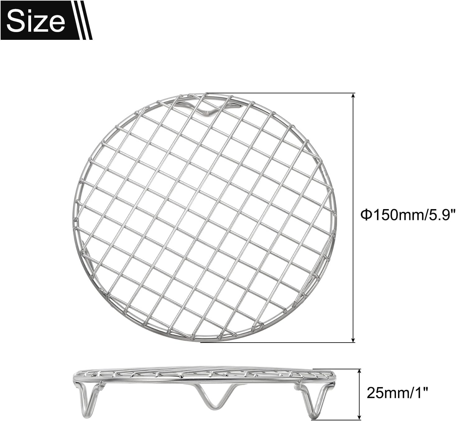 - Package & Size: You will get a round cooking rack, with the diameter is 150mm/5.9 inch, and the height is 25mm/1 inch, which is suitable for home and outdoor use.