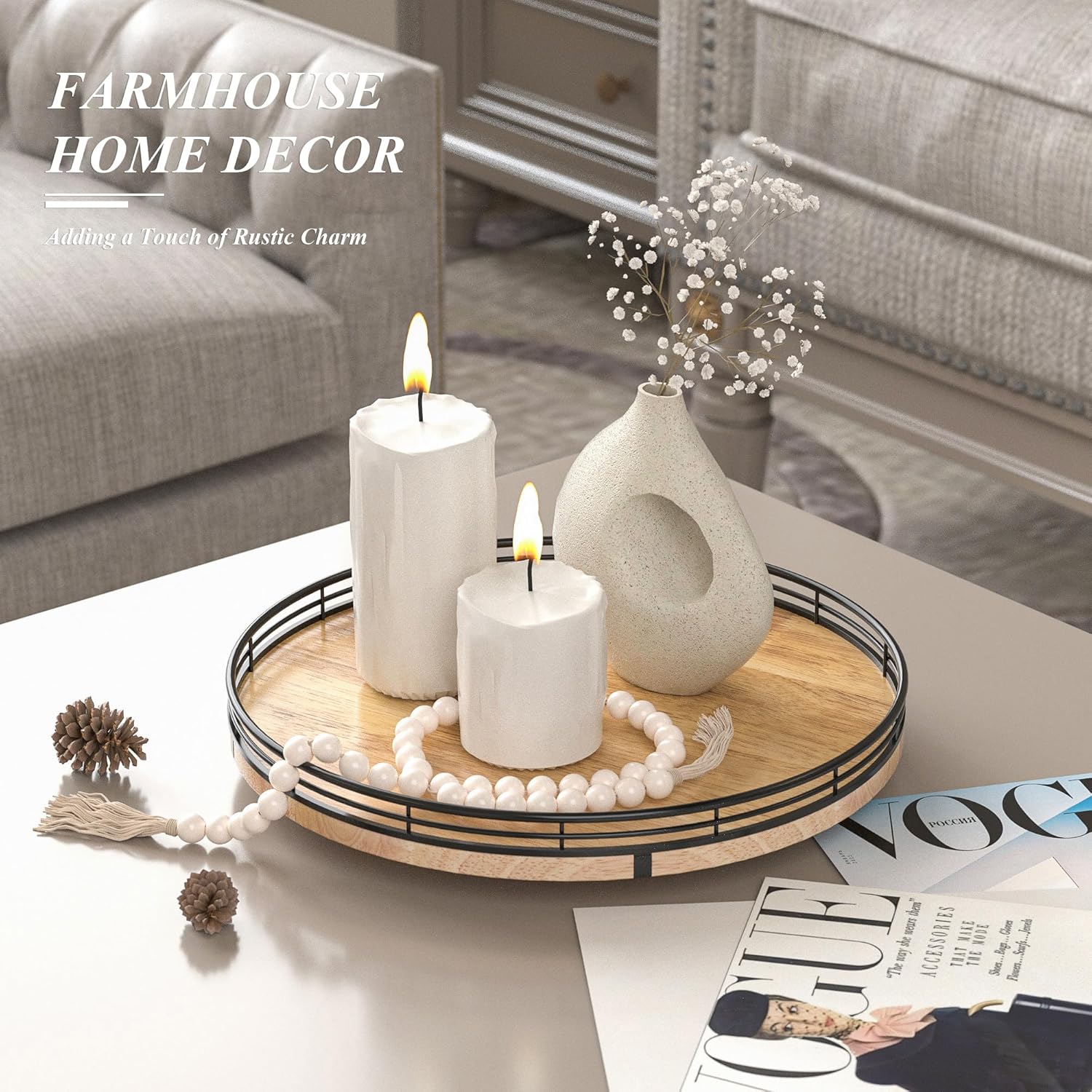 - PREMIUM MATERIAL: Our farmhouse lazy Susan organizer is made of natural solid oak wood and strong metal, sturdy, durable and premium quality. This wooden turntable organizer is a game-changer for keeping your kitchen organized. The farmhouse oak finish gives it a rustic, charming look that will fit perfectly with your kitchen decor.