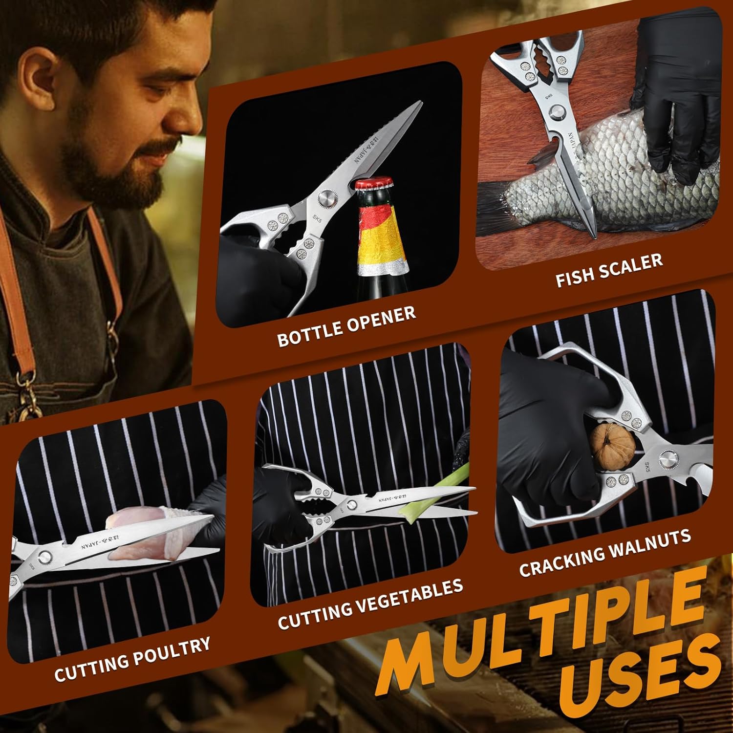 - Versatile Kitchen Tool--These Huusk kitchen scissors heavy duty are not limited to chicken bones—they are perfect for cutting through a variety of tough foods such as fish bones, lamb bones, pork bones, and more. With sharp, heavy-duty blades, they are a versatile addition to any kitchen, making meal preparation faster and more efficient.