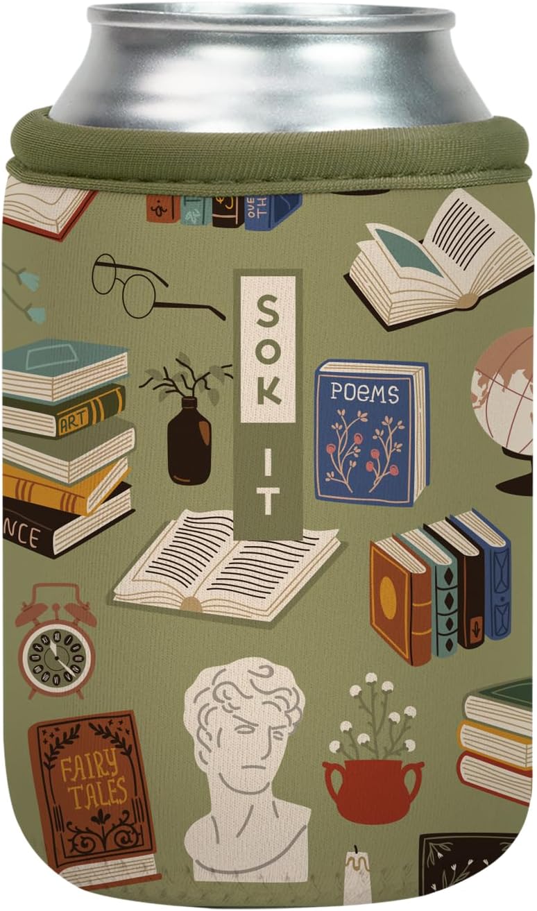 Sok It CanSok Sleeve for Beer & Soda Insulated Neoprene Cover (Book Club, 12oz Can Sleeve)