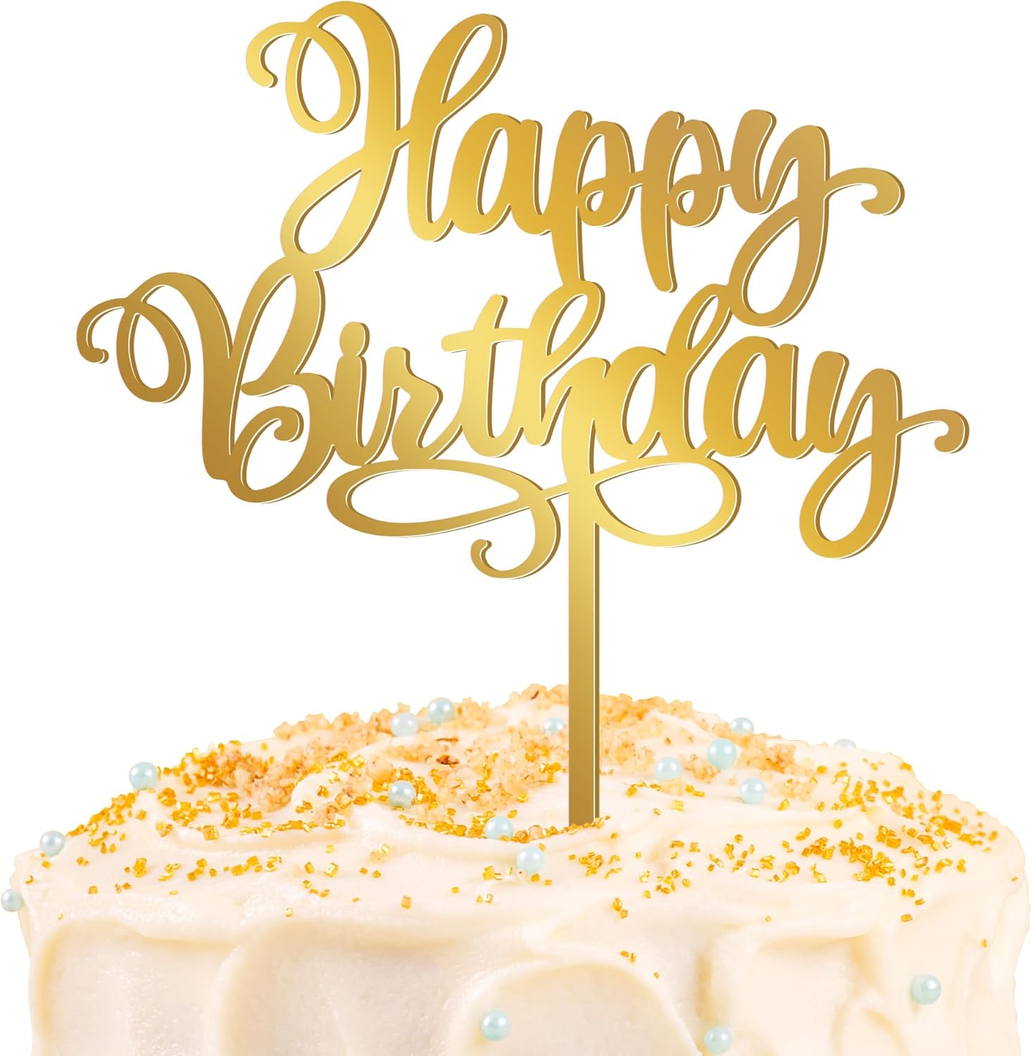 - Classic Design: The arcylic topper on this cake is designed with the words "Happy Birthday" in gold color to make your birthday more memorable.