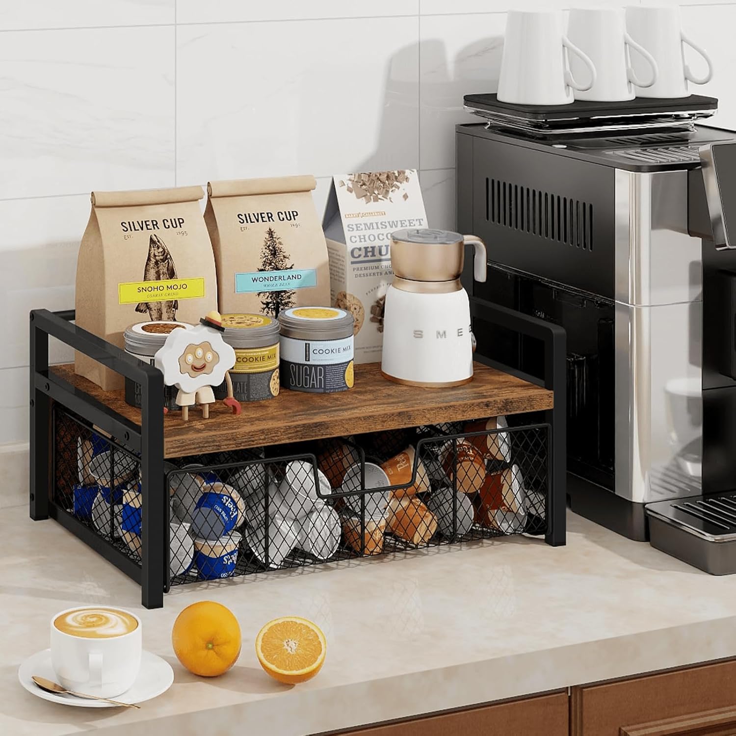 - Multi-Functional & Durable: This versatile storage rack is made from high-quality particleboard and a reinforced, widened metal frame, built to last, mildly waterproof, and easy to clean. It is not just for tea bags but can also be used to store coffee capsules, k cups in a coffee bar, or organize spices in the kitchen