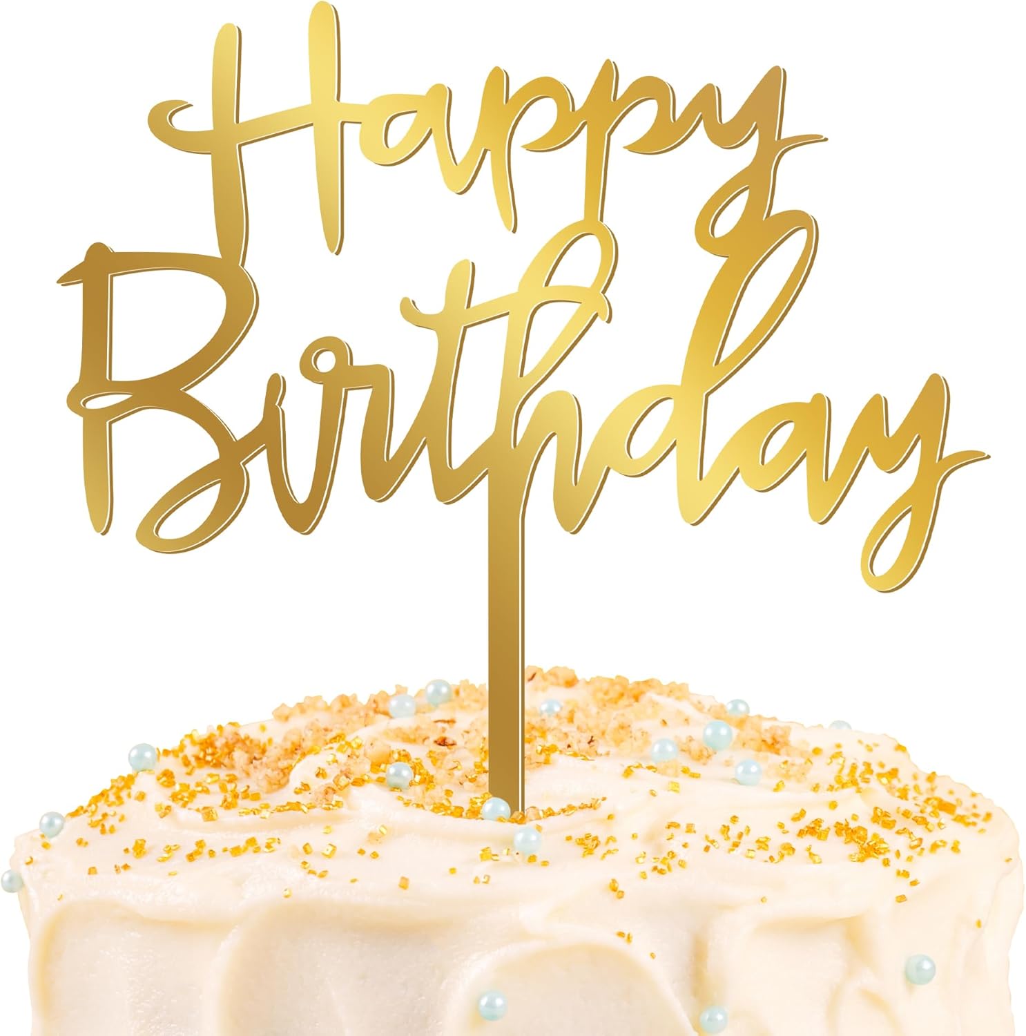 - Classic Design: Designed with the words "Happy Birthday" in gold, this acrylic cake topper adds a touch of elegance to any celebration cake. Its versatile design lends itself to masculine, feminine and neutral themes.