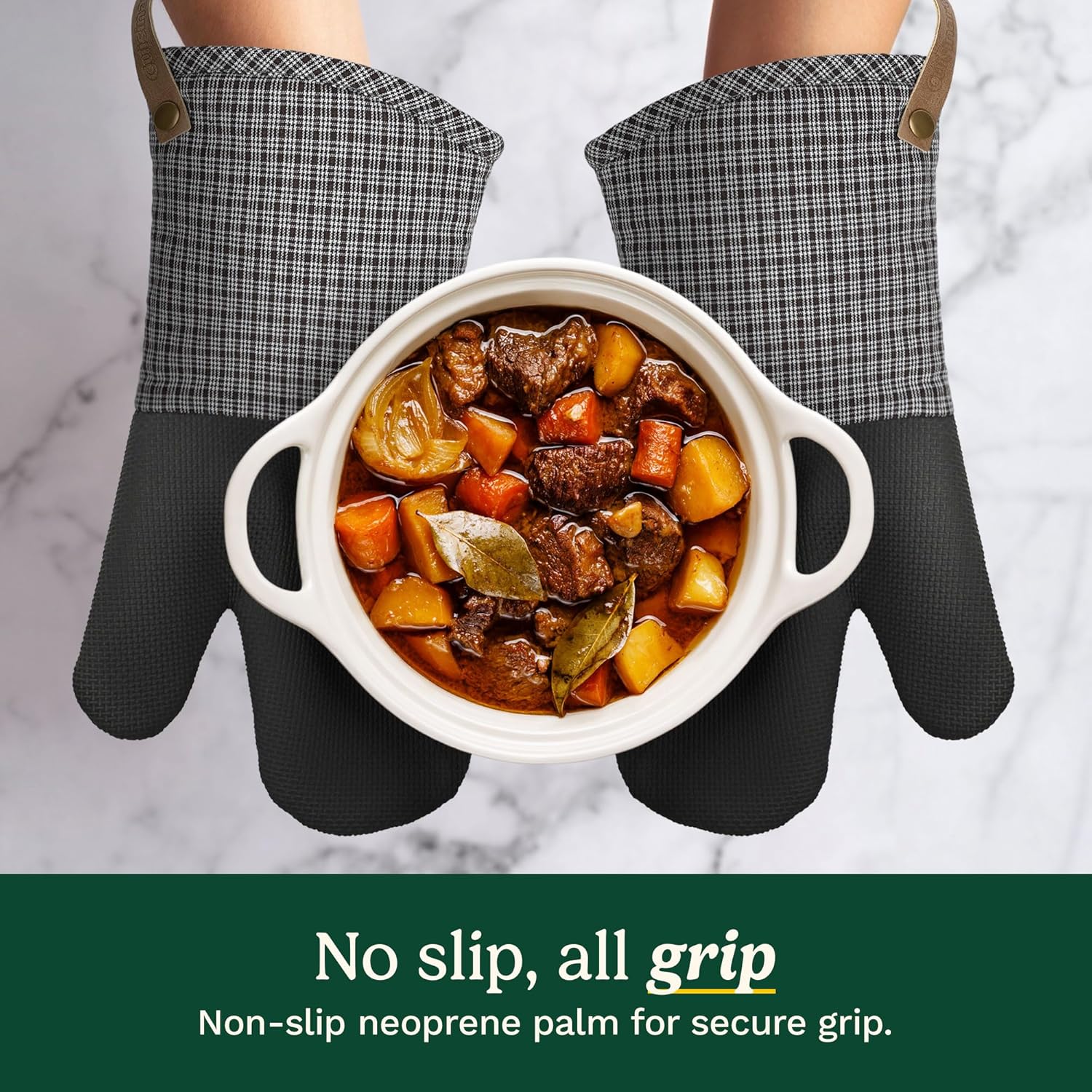 Cuisinart Heritage Kitchen Oven Mitts – Heat-Resistant Kitchen Mitts for Oven with Non-Slip Neoprene Palm, Long Cuff, and Cotton Filling – Durable Oven Gloves for Cooking, Baking, & Grilling