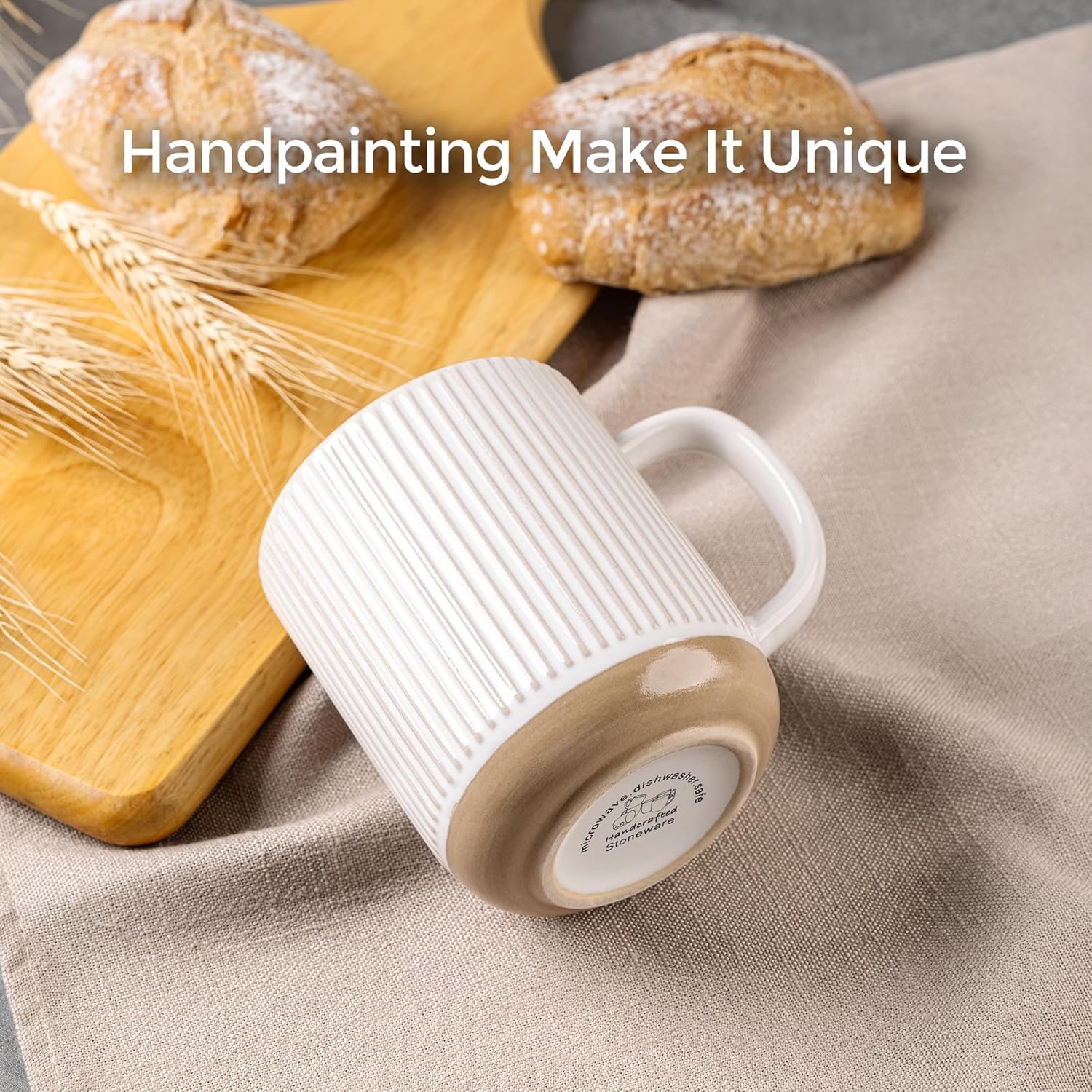 GBHOME Large Coffee Mugs Set of 4, 16oz Handmade Stoneware Coffee Mugs Set with Large Handle for Cappuccino/Latte/Tea/Hot Cocoa, Dishwasher & Microwave Safe, Off White