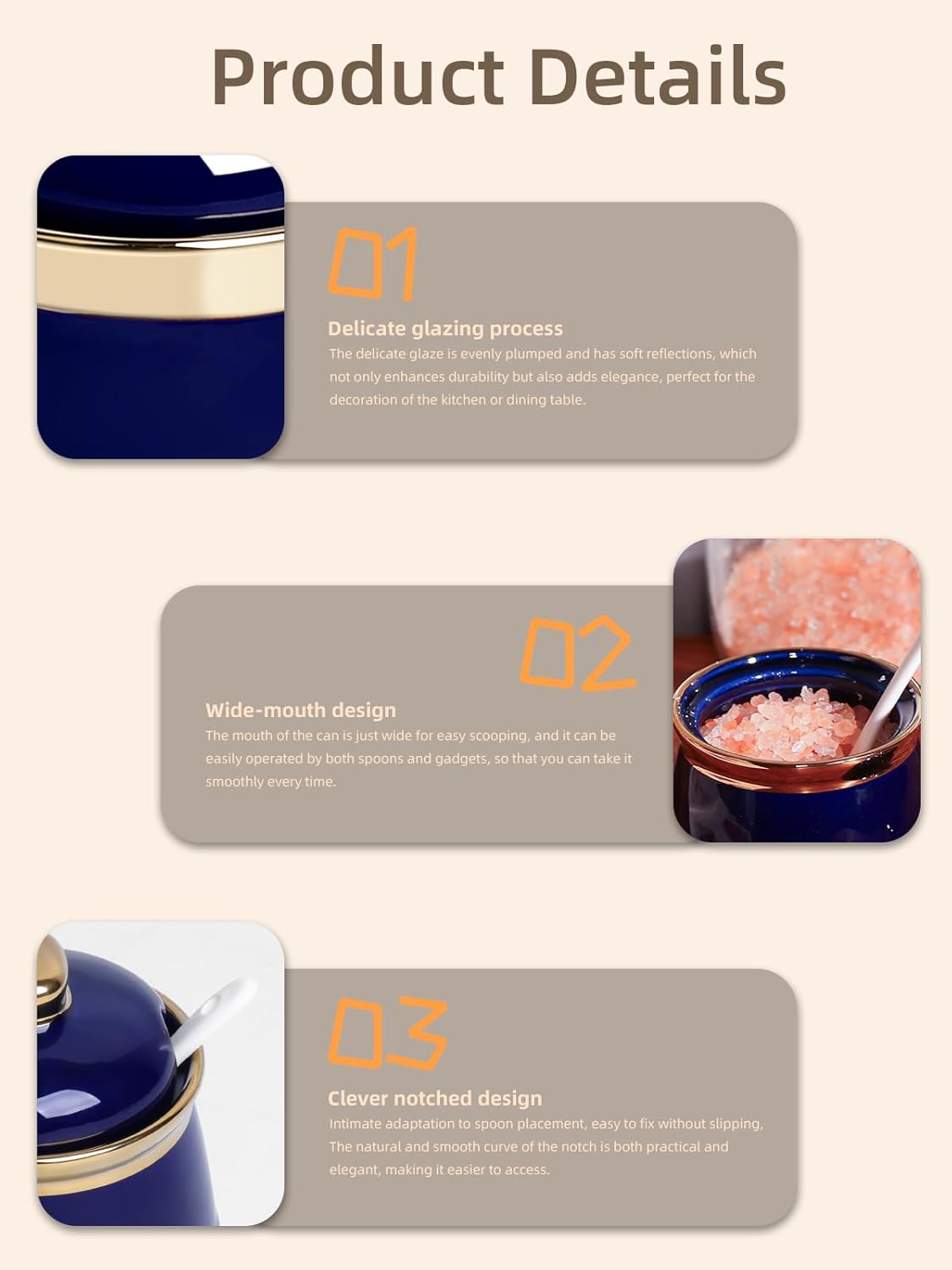 - DESIGN CONCEPT: This simple sugar bowl is equipped with a lid and a small spoon. The lid can keep your ingredients away from dust. There is a perfect notch on the lid for placing the spoon, so you don’t have to worry about placing the spoon randomly