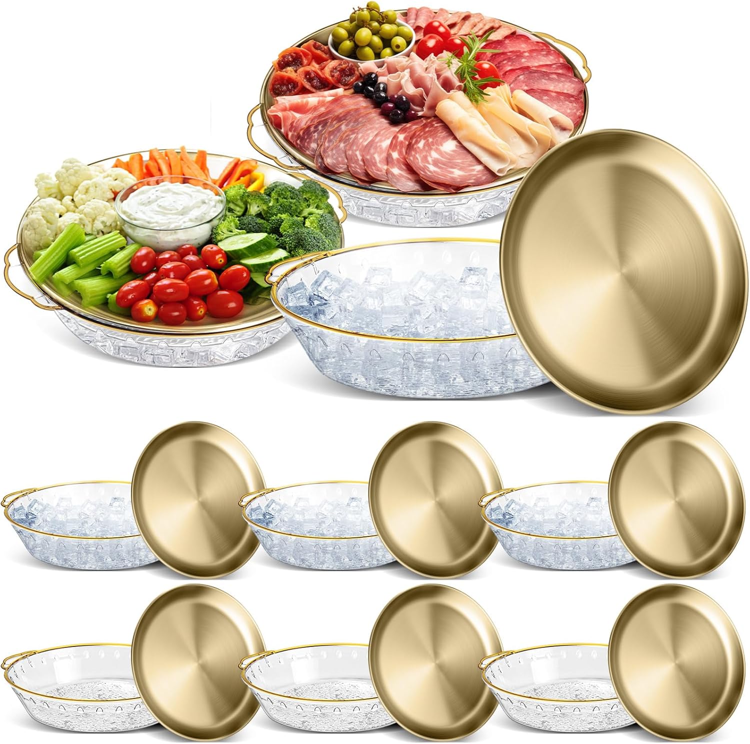 Baderke 9 Set 11.8" Chilled Serving Tray for Parties with Compartments Ice Chilled Party Platter Charcuterie Serving Board Cold Dish Dip for Fruit Seafood Vegetable Shrimp Cocktail (Gold)