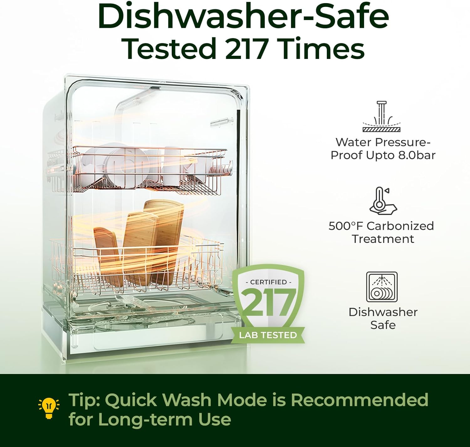 - 𝟐𝟏𝟕 𝐋𝐚𝐛 𝐓𝐞𝐬𝐭𝐞𝐝 - 𝐐𝐮𝐢𝐜𝐤 𝐖𝐚𝐬𝐡 𝐌𝐨𝐝𝐞 𝐢𝐬 𝐑𝐞𝐜𝐨𝐦𝐦𝐞𝐧𝐝 𝐟𝐨𝐫 𝐋𝐨𝐧𝐠 𝐓𝐞𝐫𝐦 𝐔𝐬𝐞: Crafted through a 500°F deep carbonization process, Keechee's dishwasher-safe bamboo cutting board offers enhanced structural integrity and lasting durability. For best results, we recommend using the quick wash mode to preserve its quality and shape over time. Enjoy a smooth, splinter-free surface that makes your kitchen routine safer and more efficient.