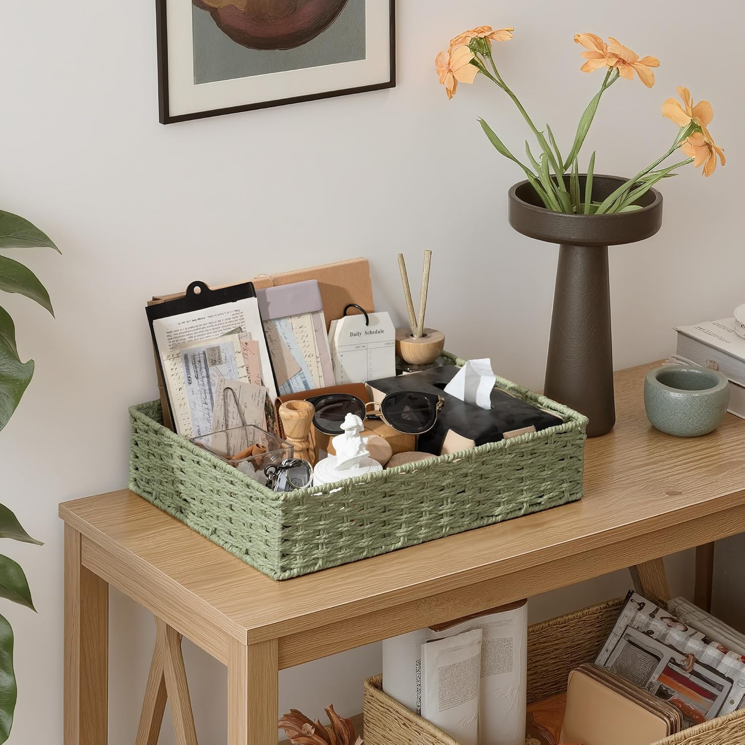 StorageWorks Bathroom Vanity Tray for Countertop, Bathroom Counter Tray for Decorative, Toilet Paper Baskets, Green, Larger, 2 Pack