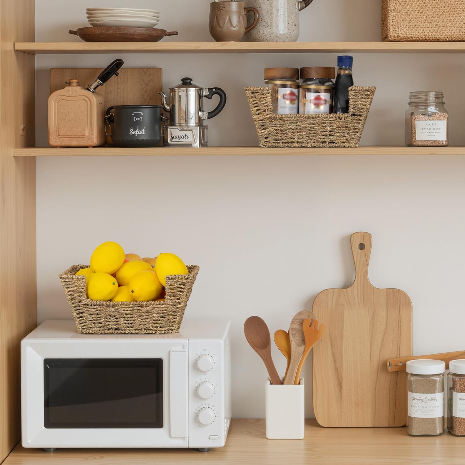 - Handwoven Craftsmanship: Each pantry basket is carefully crafted by skilled artisans, showcasing natural textures and adding an artistic touch to your home.