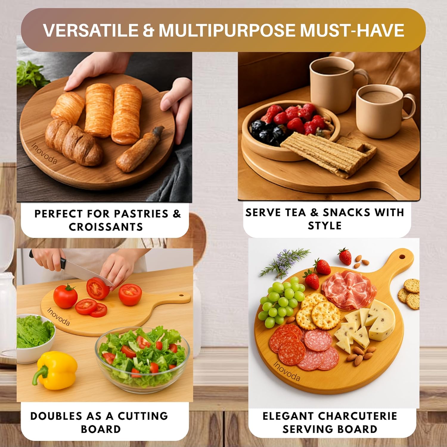 - Multi-Use Cutting Board & Serving Tray: Doubles as a sturdy bamboo cutting board or stylish serving tray for charcuterie, cheese, or snacks, enhancing pizza nights and entertaining.