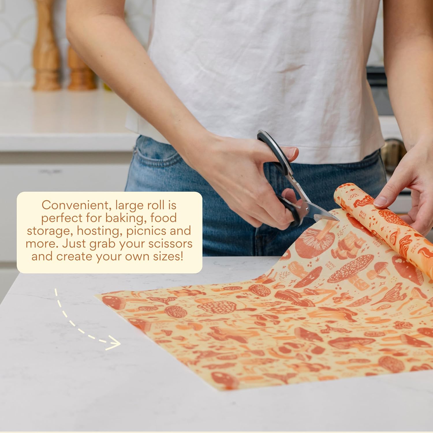 Bee's Wrap Beeswax Wraps for Food - Mushroom Magic Cut to Size 14x52" Wax Paper Roll - Made in USA Reusable Waxed Paper & Bowl Covers - Organic Eco-Friendly Alternative to Aluminum Foil & Plastic Wrap