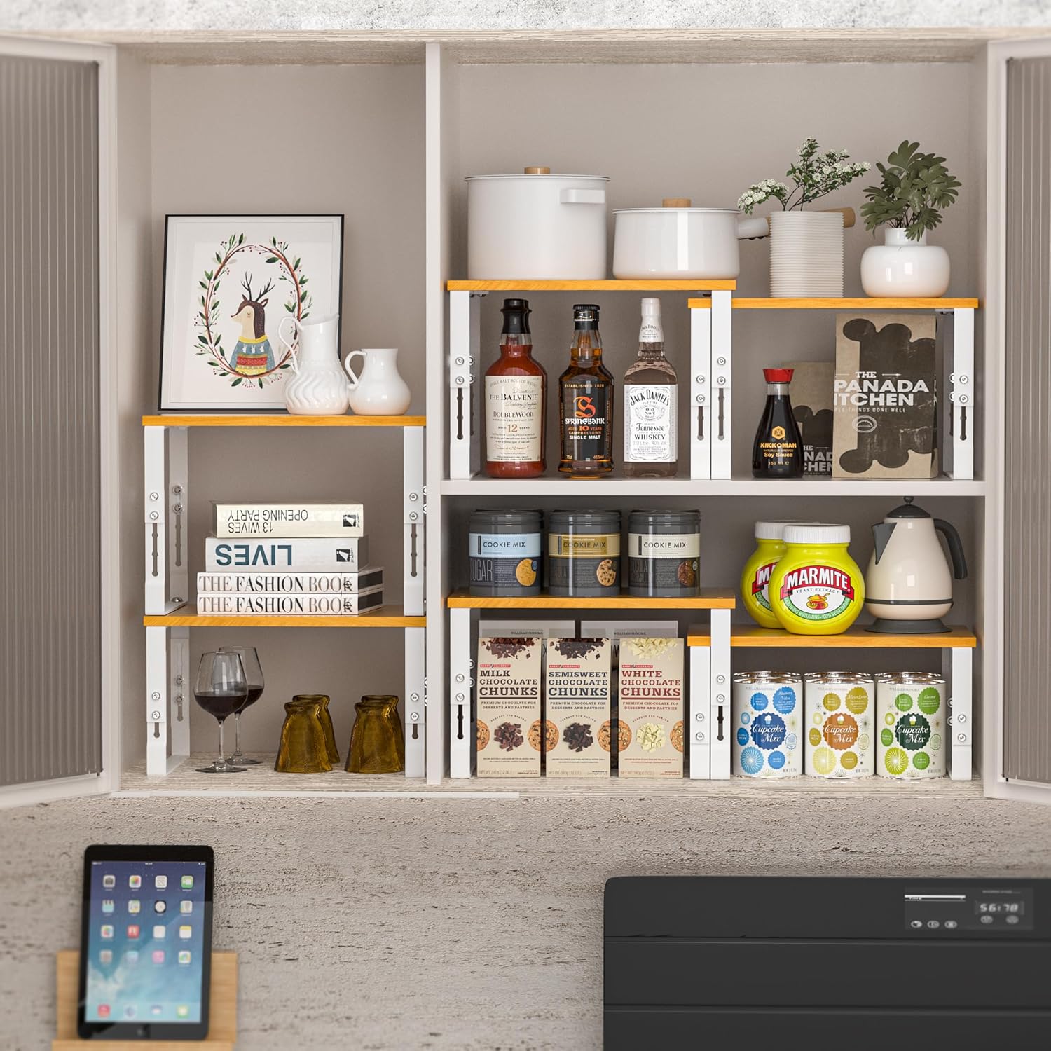 - ✅ From Spices to Tools: Versatility Redefined:Transform clutter into order! These shelves effortlessly organize spices, canned goods, tools, books, or decor. Use as a countertop spice rack, pet food station, or dining room centerpiece. Ideal for apartments, dorm rooms, RVs, or any space-conscious home.