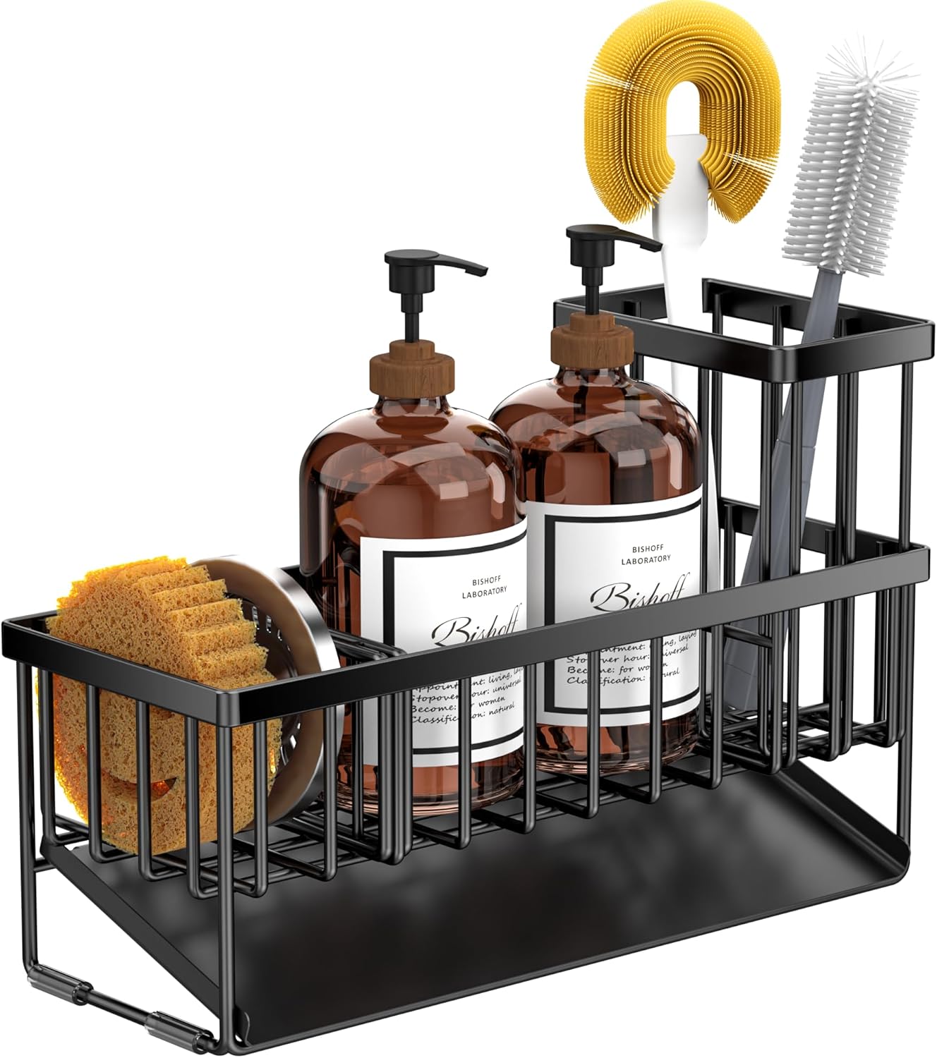 - 【EXTENDED AND LARGER CAPACITY】Cisily sponge holder has upgraded size. The size is only 10.62 inches * 3.97 inches * 6.37 inches, which can accommodate detergent bottles, sponge balls and sink plugs. Cisily sink organizer is additionally upgraded with a brush holder, which can hold up to 4 large and small brushes, perfectly saving countertop space.