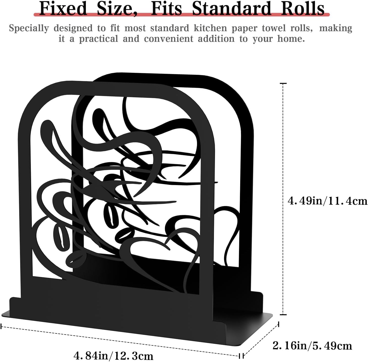 Modern Standing Napkin Holder for table, Black Metal Napkin Dispenser, Coffee time Theme Style Napkin Holder, Suitable for Kitchen, Coffee Shop, Dining Room