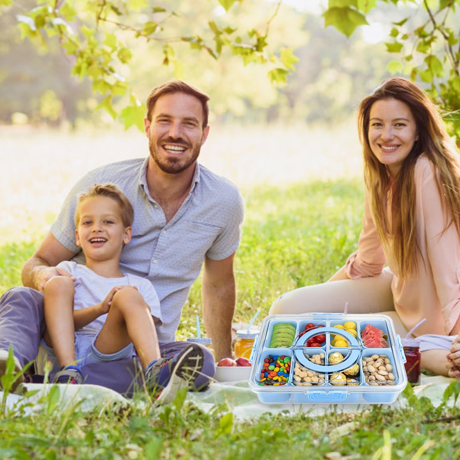 Divided Serving Tray with Lid and Handle,8 Compartments Snacks Box,Snack Fruit Veggie Tray,Portable Platter for Candy Fruits Nuts Snack Party Entertaining Picnic (2PCS Blue)