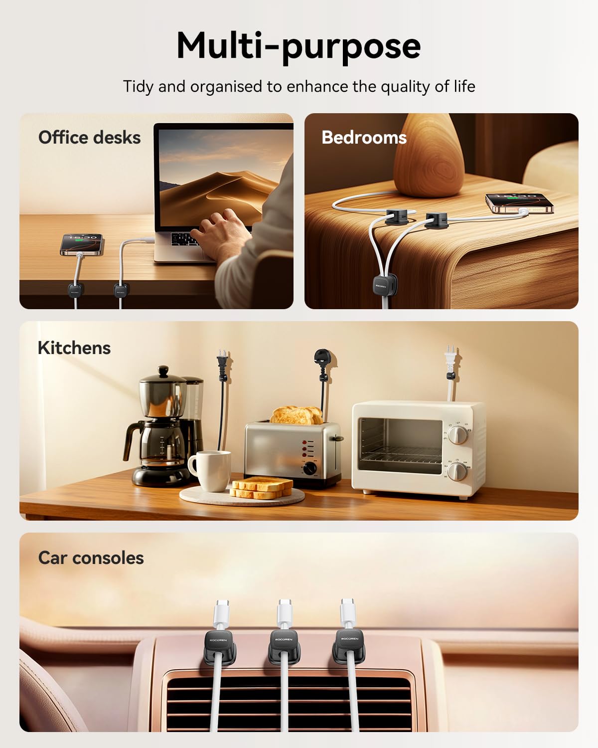- Full-Scene Solution: Desk accessories with 6-Pack Cord Organizer can be flexibly arranged in office desks, computer desks, walls, car instrument panels and other scenarios, and centrally manage charging cables, data cables, and power cables.Mini-free space is not used to create a minimalist desktop (Clutter-Free Desk)