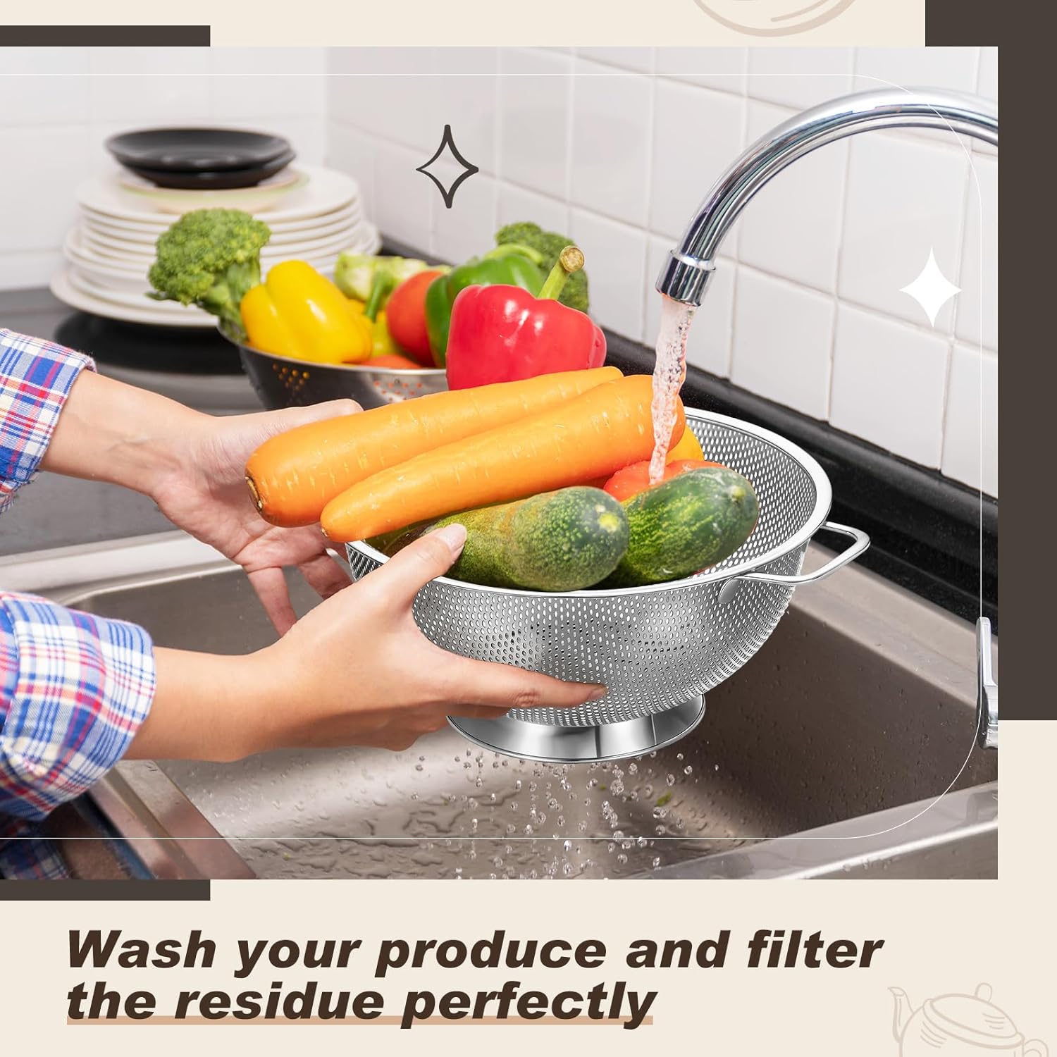 - Safe to Use: the colander strainer is made of quality stainless steel material, reliable and solid, tear and wear resistant, will not easy to break or deform, which can be applied for a long time, you can use with confidence