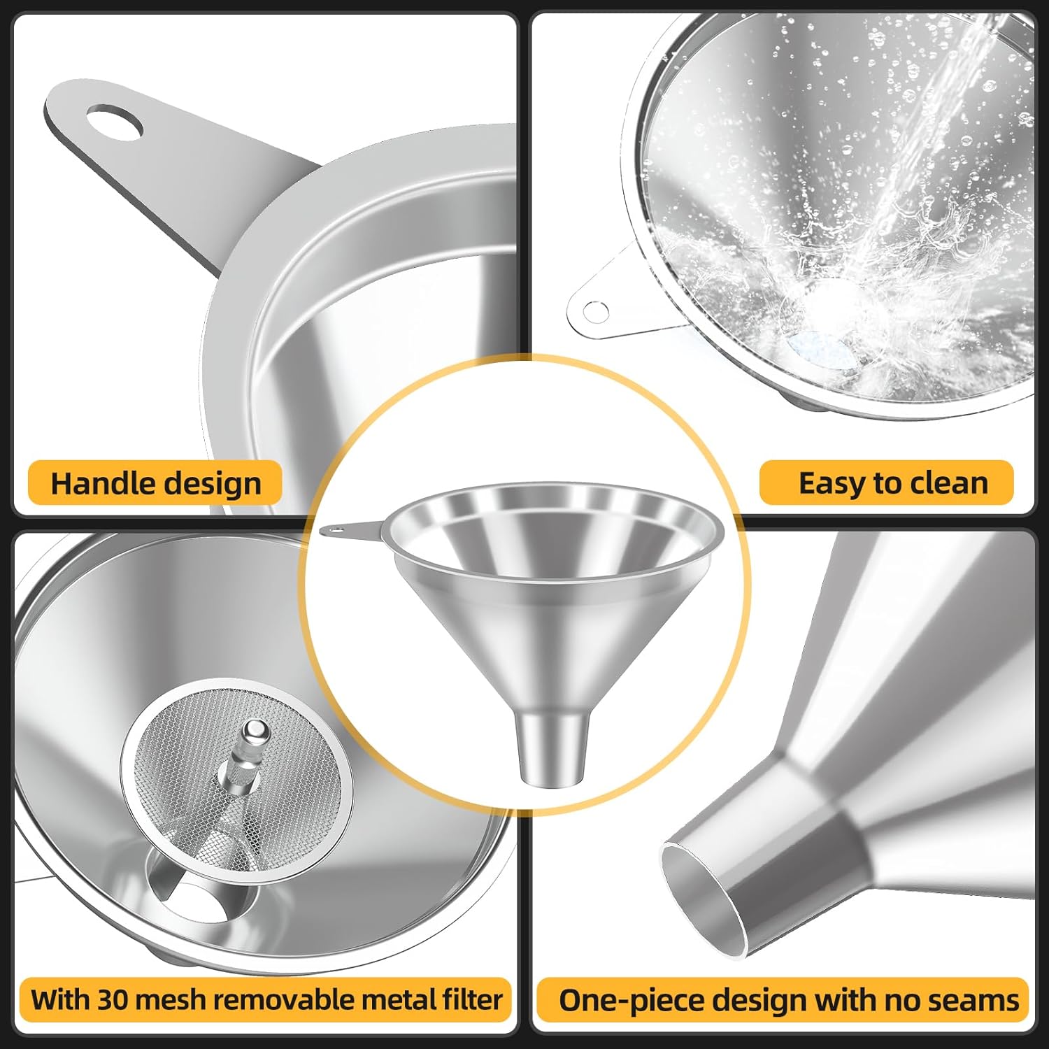 - Easy to Clean & Dishwasher Safe – The smooth, seamless surface prevents residue buildup, making these funnels easy to rinse or clean in the dishwasher for hassle-free maintenance.