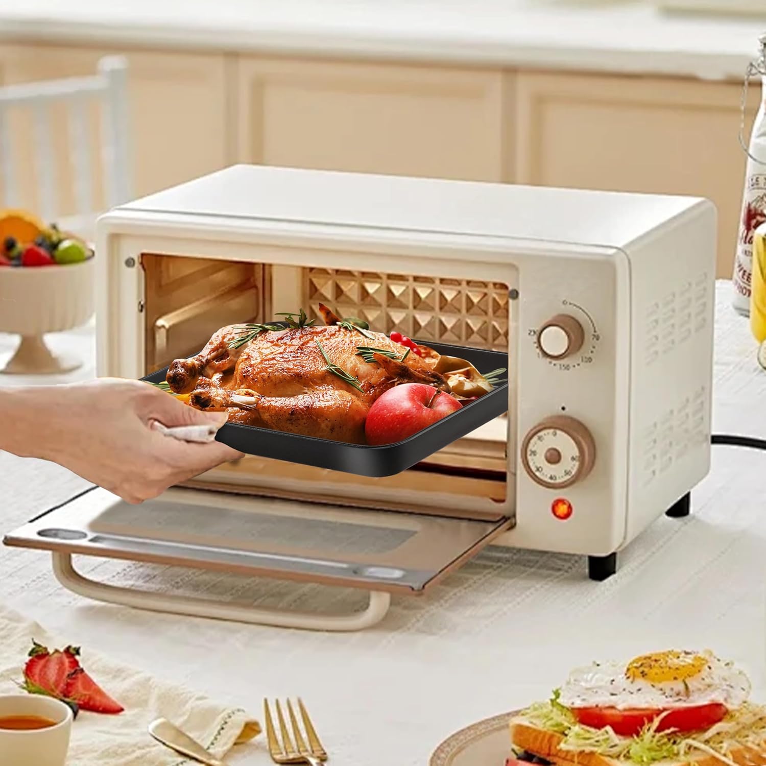 - Oven Safe & Even Heating: thick and flat bottom ensures stable placement and distributes heat evenly and quickly for thorough baking, heavy duty toaster oven cake pans is not easy to twist at high-temperature and deformation for oven use