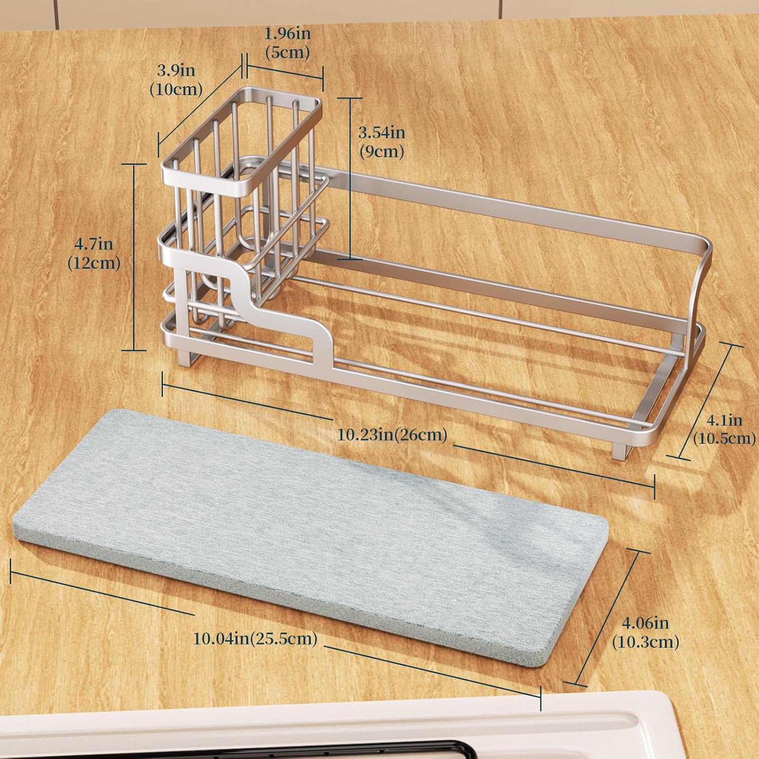 - [Fast Water Absorption and Drying]: Equipped with a sink caddy sponge holder featuring a diatomite base, it quickly absorbs water and dries fast, preventing water spots and odors, while keeping your items dry