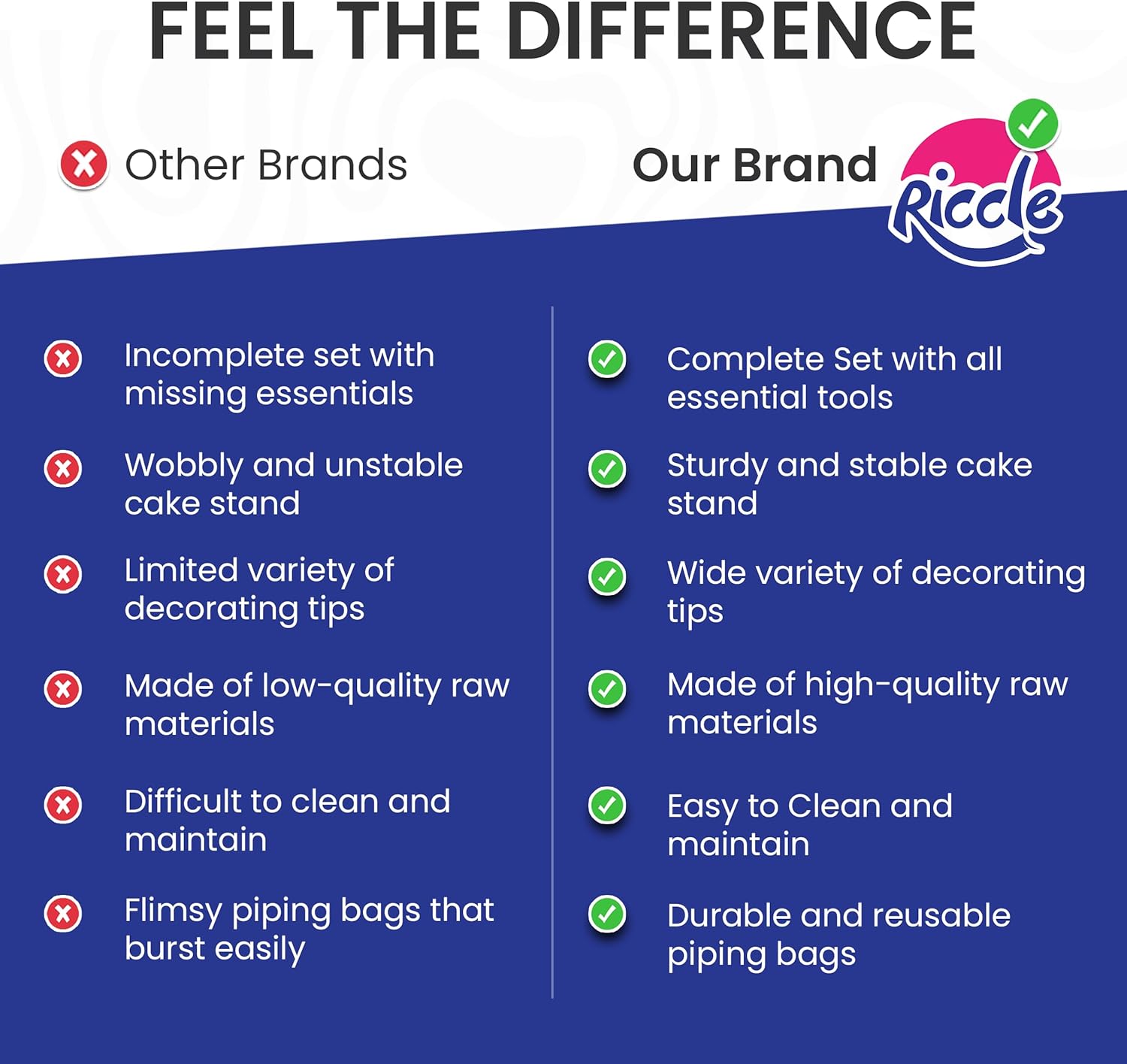 - Complete Cake Decorating Supplies: This all-in-one baking kit includes a rotating cake stand, 24 icing piping tips, 2 cake spatulas, 3 cake scrapers, 50 12 Inch disposable piping bags, 6 Cupcake Liners, 2 reusable pastry bags, 4 bag ties, and 2 couplers. Perfect for all your cake decorations.