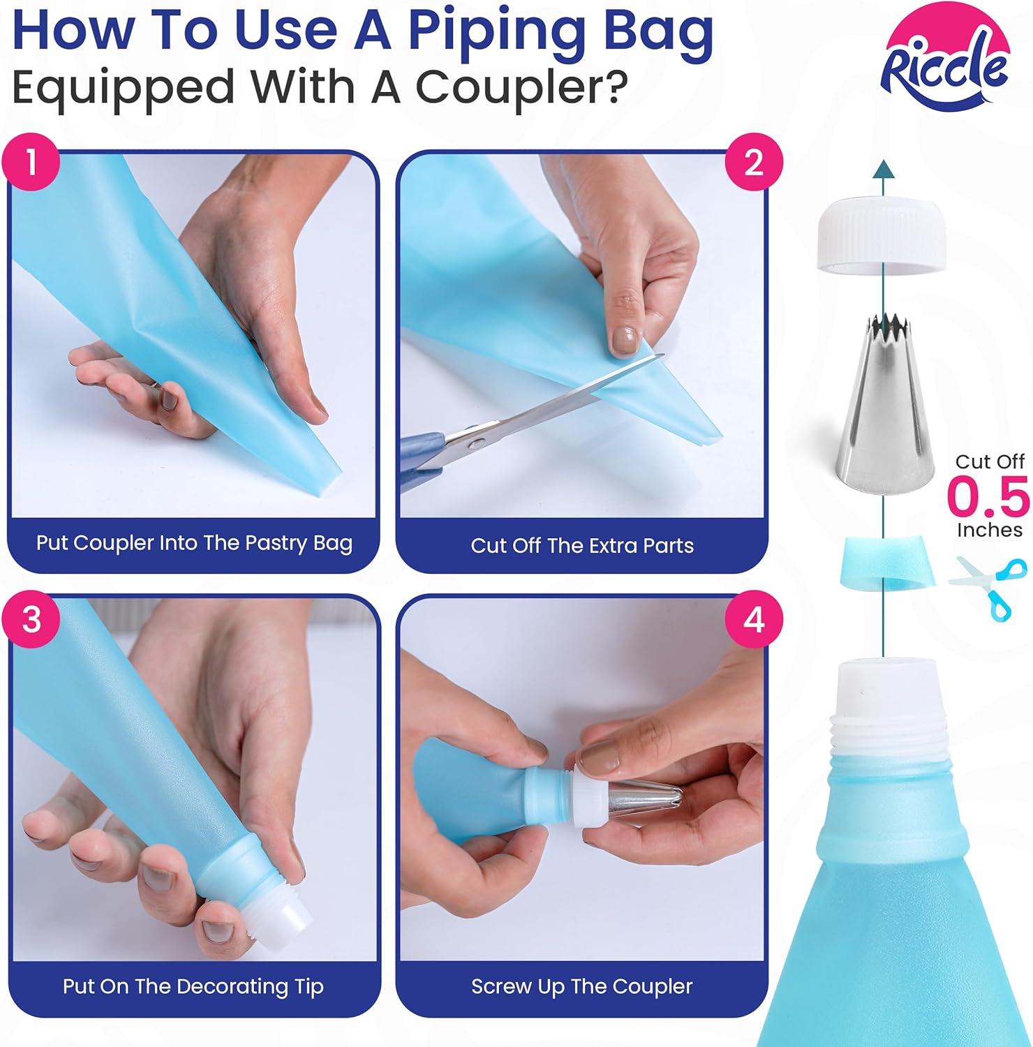 Riccle 94 pcs Cake Decorating Kit with Cake Turntable - Includes 50pcs 12 Inch Disposable + 2 Reusable Piping Bags and Tips Set, 24 Icing Piping Tips, 2 Spatulas, 3 Icing Comb Scraper, 6 Cake Liners