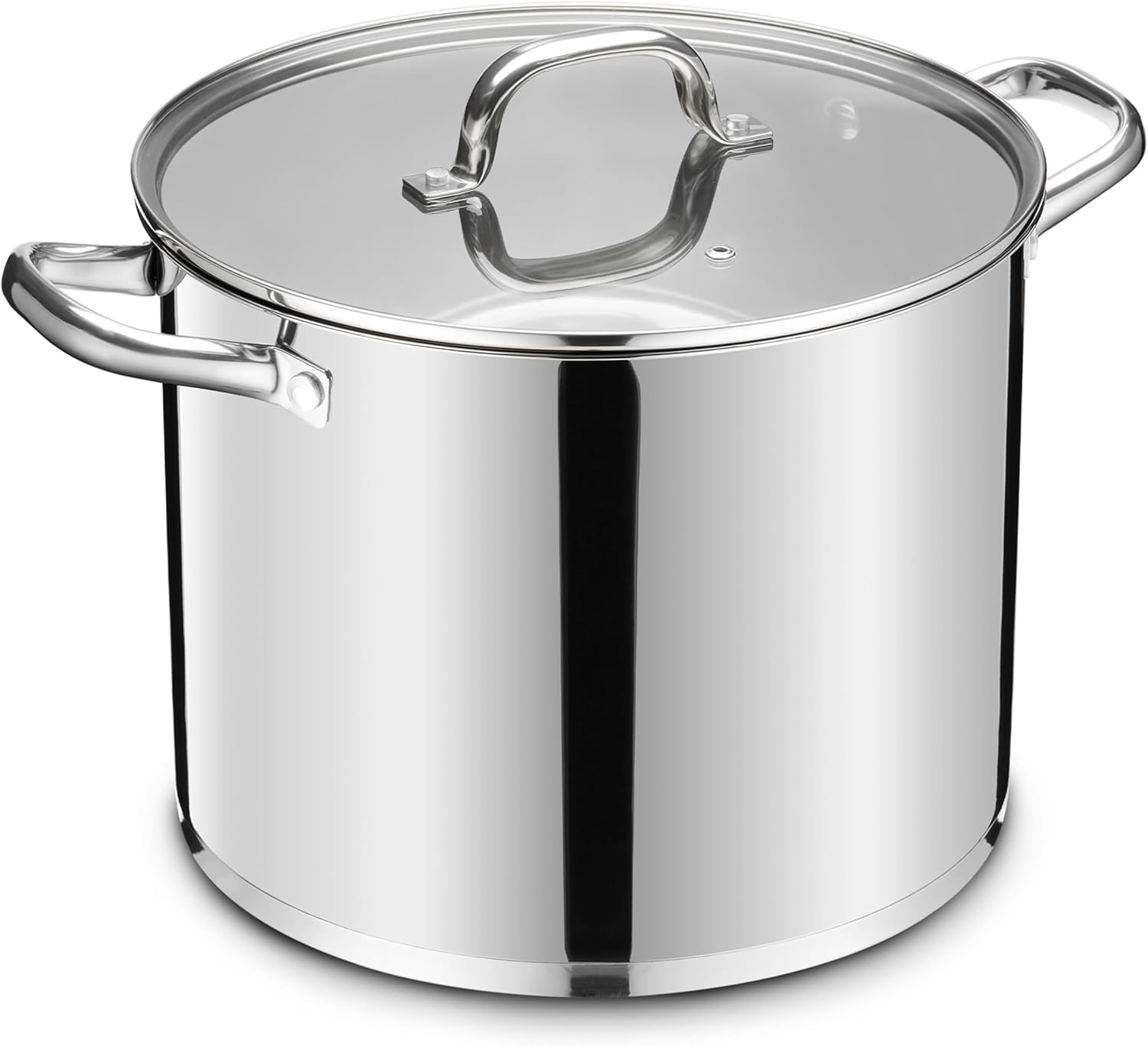 Stainless Steel Large Stock Pot, LIANYU 24 QT Heavy Duty Stockpot with Glass Lid, Deep Classic Soup Pot for Cooking Stewing Simmering, Thick Tri-ply Base & Stay-Cool Handle, Dishwasher Safe Cookware