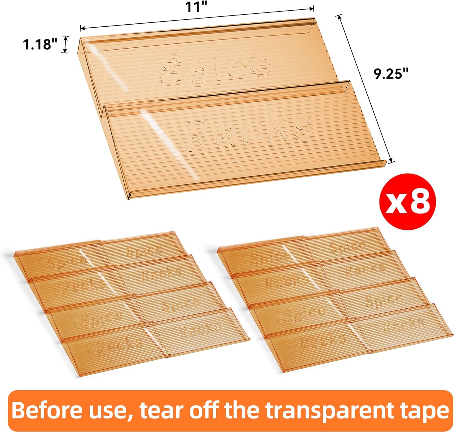 8 Packs Spice Drawer Organizer, 2-Tier Acrylic Drawer Seasoning Organizer, Expandable From 11'' to 22'' Kitchen Spice Rack Organizers and Storage for Drawer (Jars not included), Amber