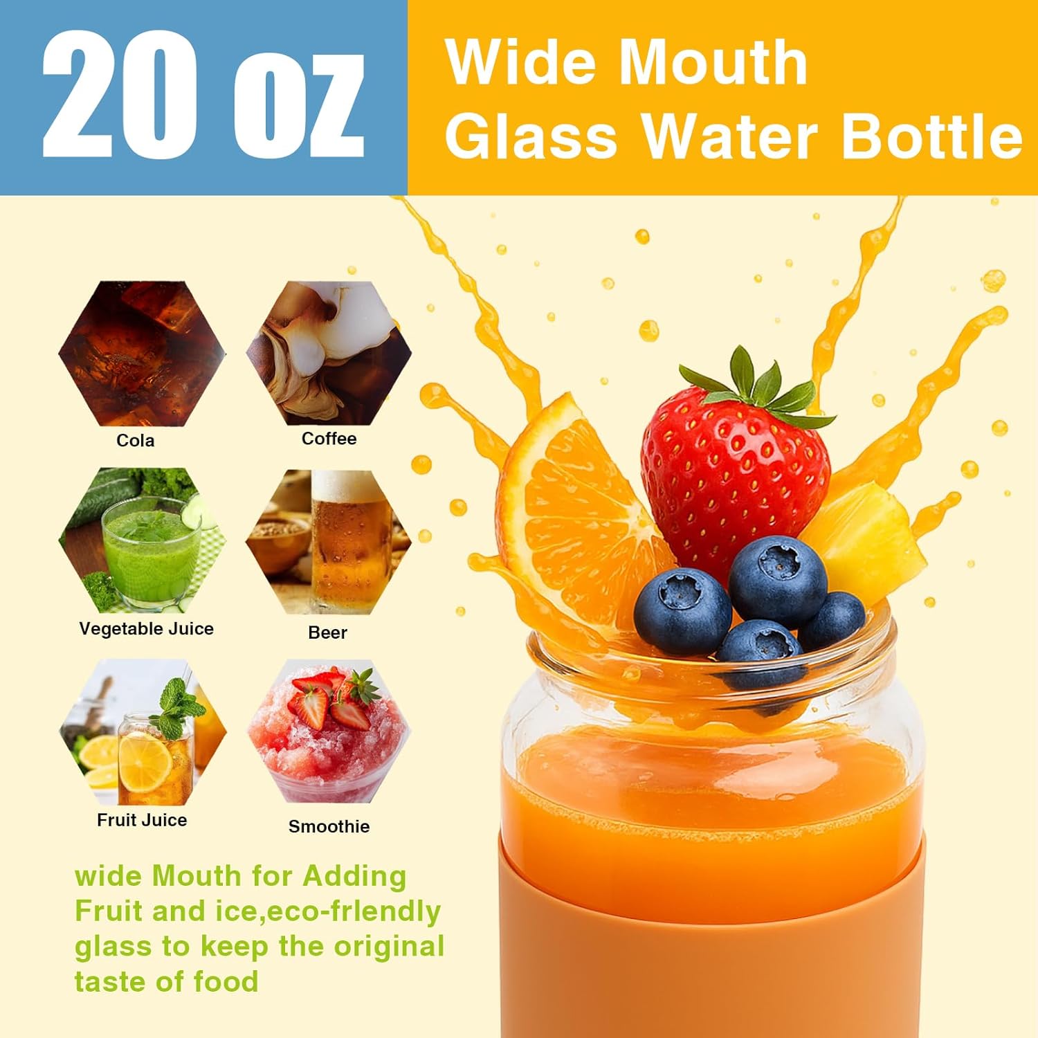 - Premium Borosilicate Glass: Made from high-quality borosilicate glass, this 20oz water bottle is durable, heat-resistant, and perfect for maintaining the taste and purity of your beverages, whether hot or cold