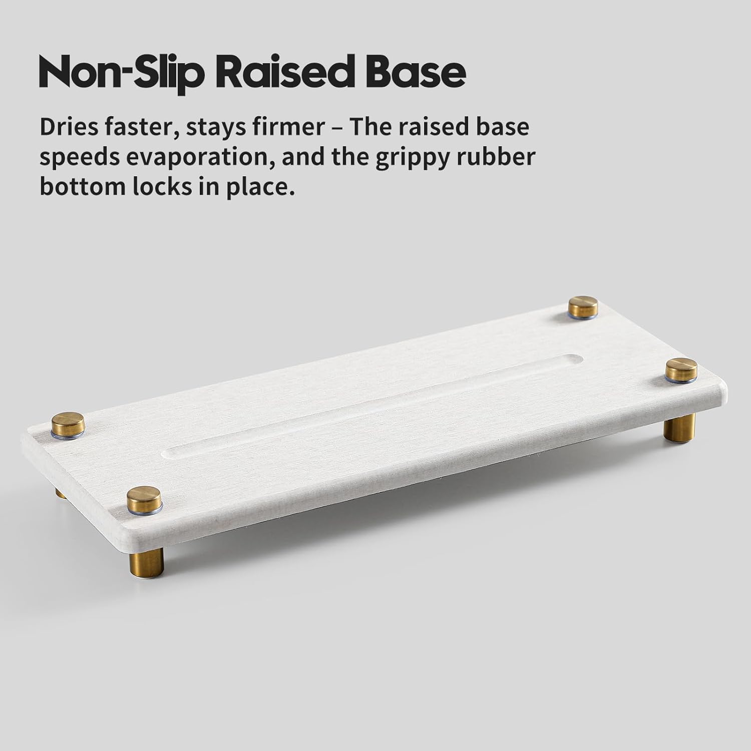 - 【Multifunctional Water Absorbing Stone Tray for Sink】 Using this tray for your soaps and brushes in the bathroom, or by the kitchen sink. The fast drying sink caddy provides you with a neat and orderly space for your home.