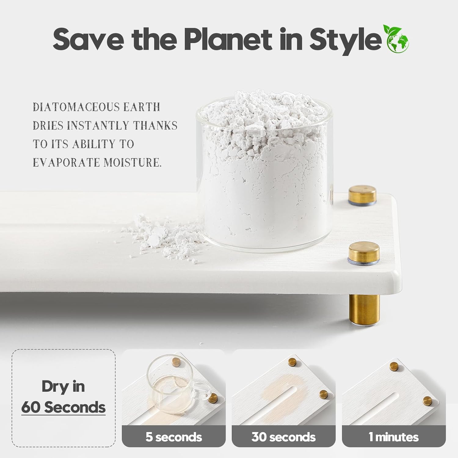 - 【Sustainable Materials】Diatomaceous earth dries instantly thanks to its ability to evaporate water. Safe, Sustainable and Long-lasting.