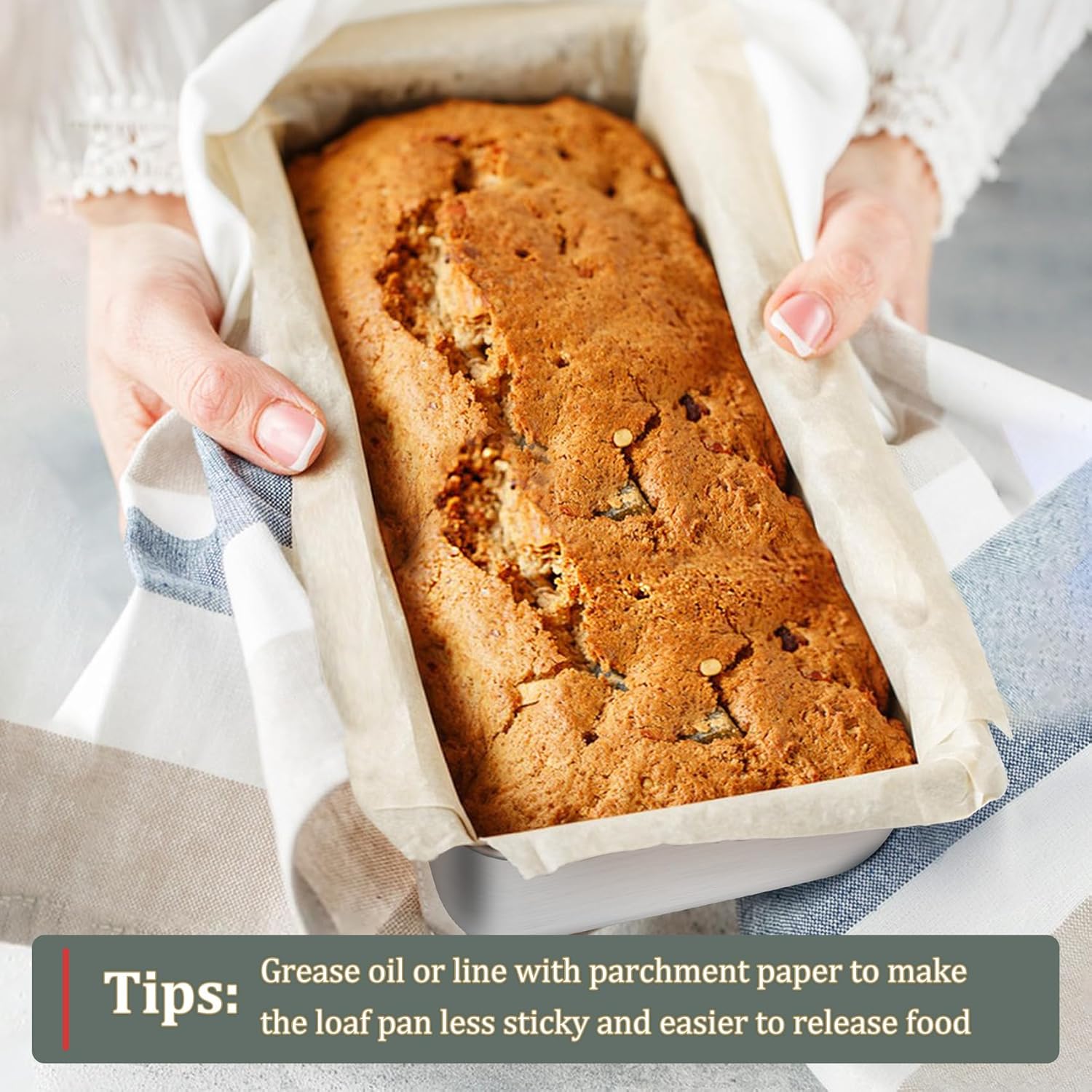 - EFFORTLESS RELEASE & CLEAN: This large bread tin is processed with brushed finish which ensures for a less-sticky surface for easy food release and less food residue, Rounded corners with no dead angle to avoid food accumulation, Super easy to clean by hand and dishwasher safe for less work (Recommended using parchment paper or greasing oil for easier release)