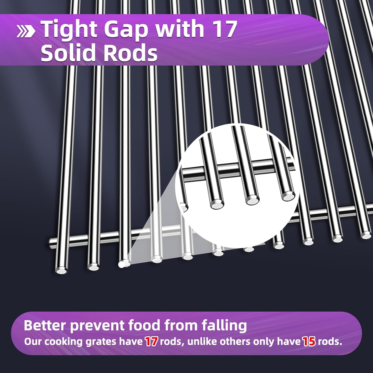 9MM 18 7/8" Stainless Steel Genesis 2 Grill Grates for Weber Genesis ii E-310 E-315 E-325 E-330 E-340 S-335 S-340 GS4 Grills Replacement Parts for Weber 66095 Genesis ii 300 LX 300 Series