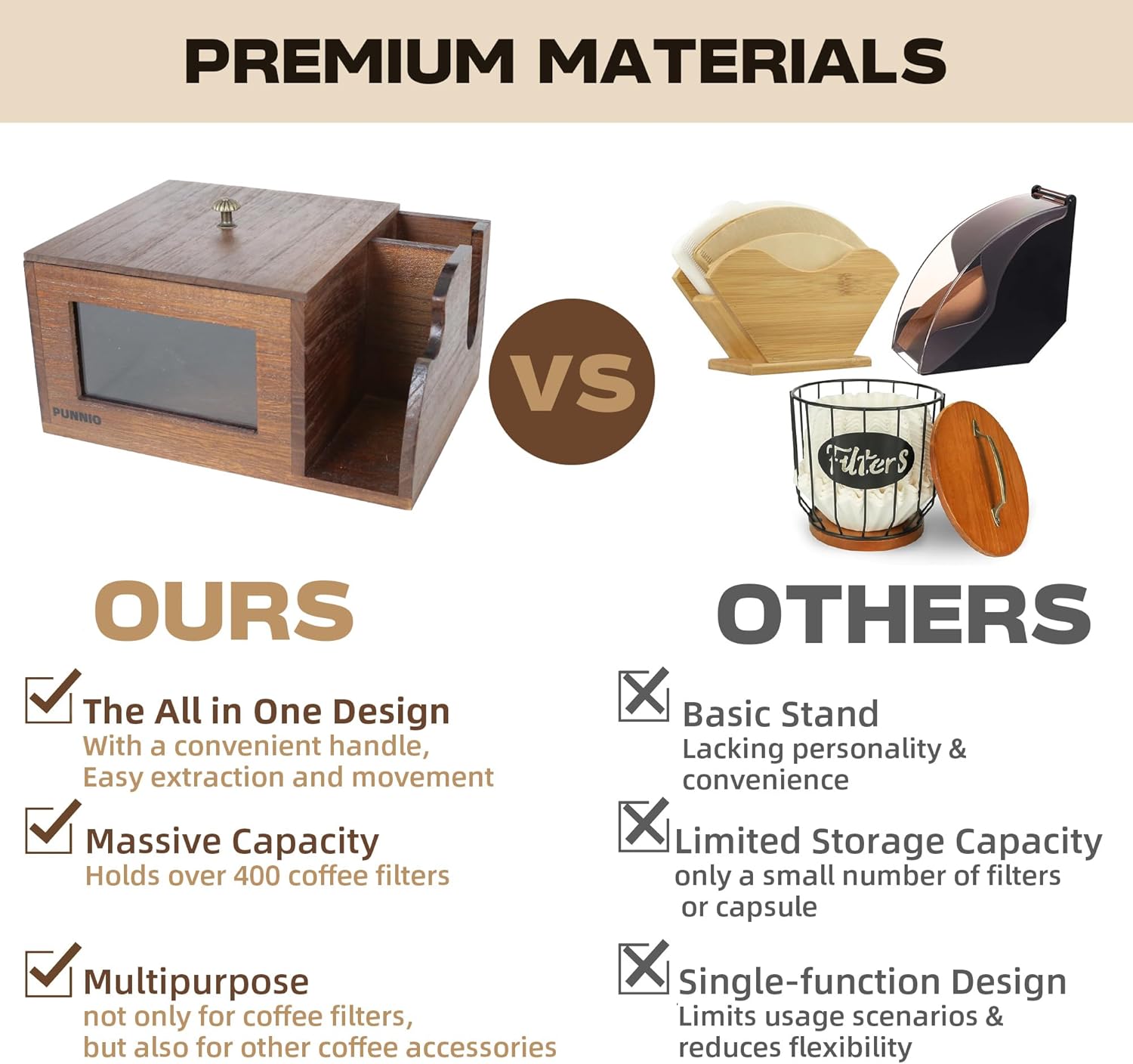 - Space-Saving Solution: Featuring a compact design, our coffee filter storage maximizes counter or cabinet space, keeping your kitchen tidy and organized. Its sleek profile allows for easy access to filters, streamlining your brewing process while reducing clutter. Perfect for maintaining an efficient coffee station without sacrificing style.