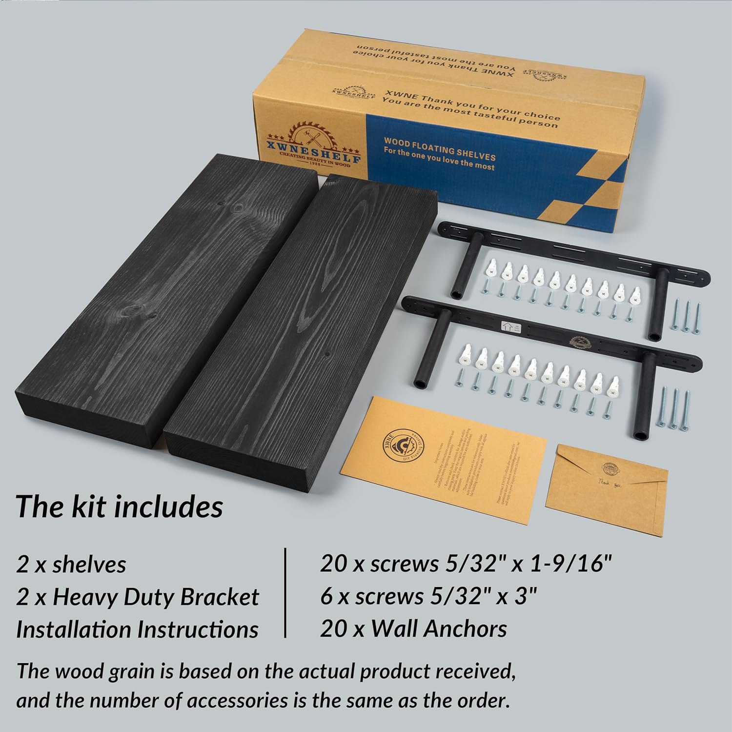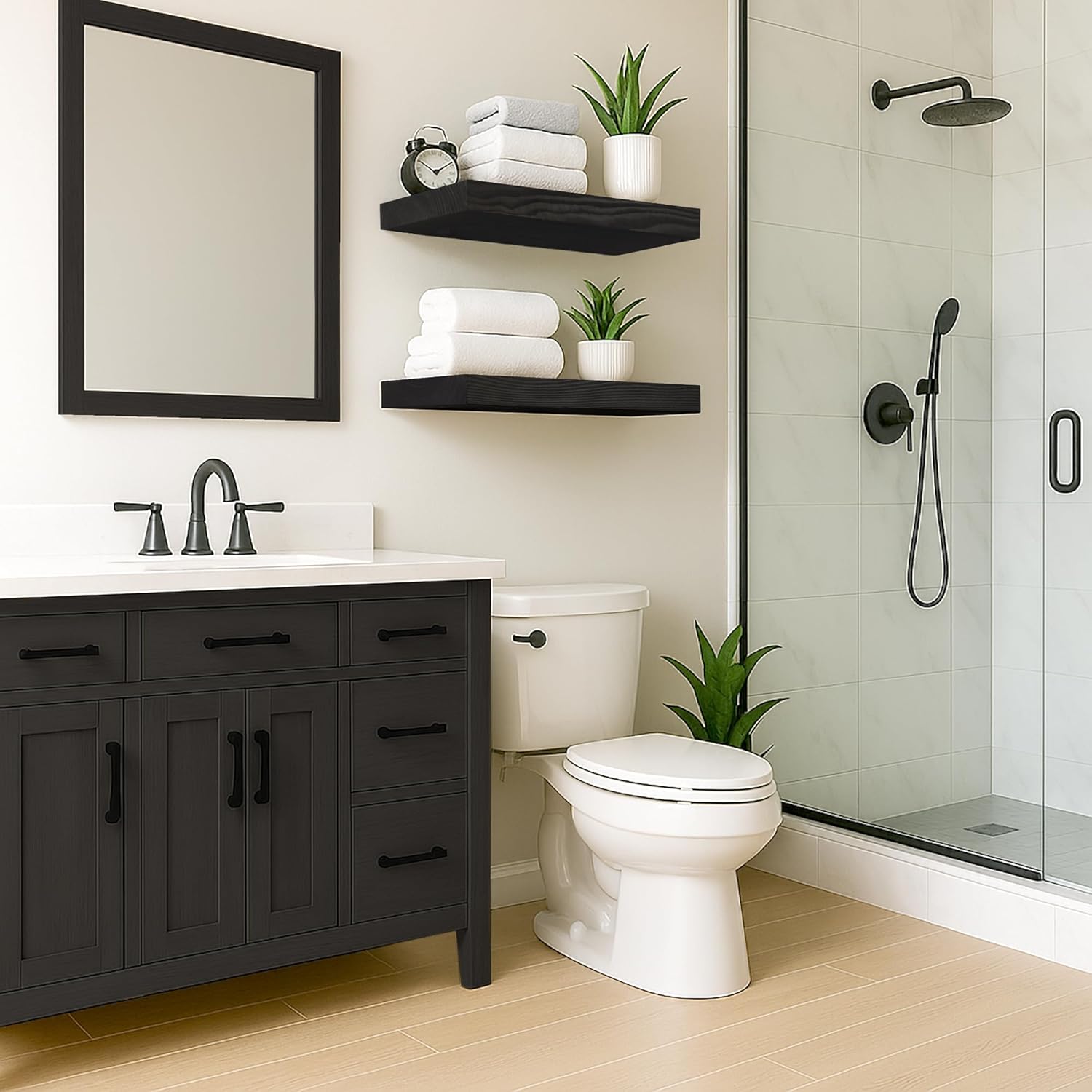 Rustic Floating Shelves 24 inch Long 8 inch deep Set of 2, Solid Wood Wall Shelves for Bedroom Living Room Kitchen,Book Shelf for Wall, Wall Mounted Shelves with Hidden Bracket- Black