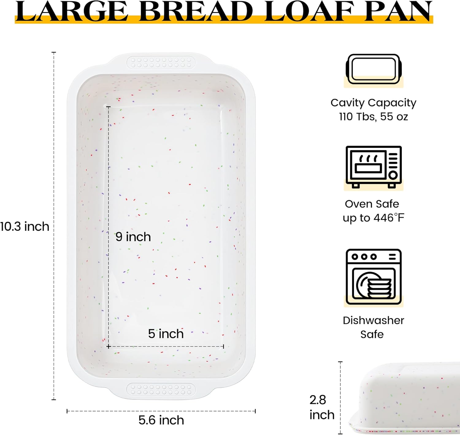 - Durable & Long Lasting:The reinforced frame provides exceptional stability to the large loaf pan. You can confidently fill it with batter without worrying about the bread loaf pan bending or warping. Each bread pan are 10.3 x 5.6 x 2.8 inch, cavity size is 9 x 5 x 2.8 inch