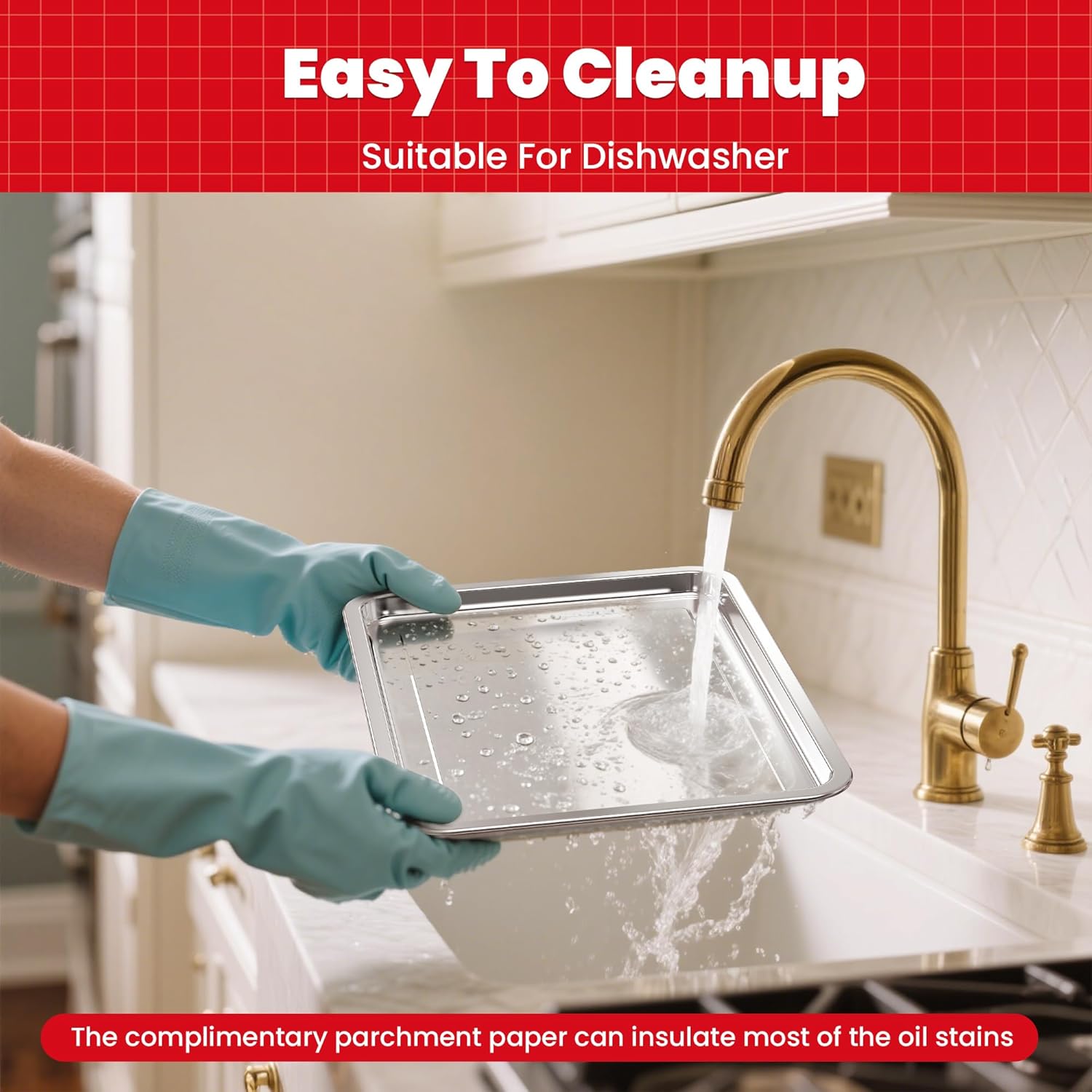 Air Fryer Basket for Oven,Ease Of Cleaning,Air Fryer Basket and Stainless Steel Baking Tray Pant Oven with 50 Sheets Parchment Papers,Air Fryer Pan Rack for Cooking Baking Dishwasher (1 Set L)