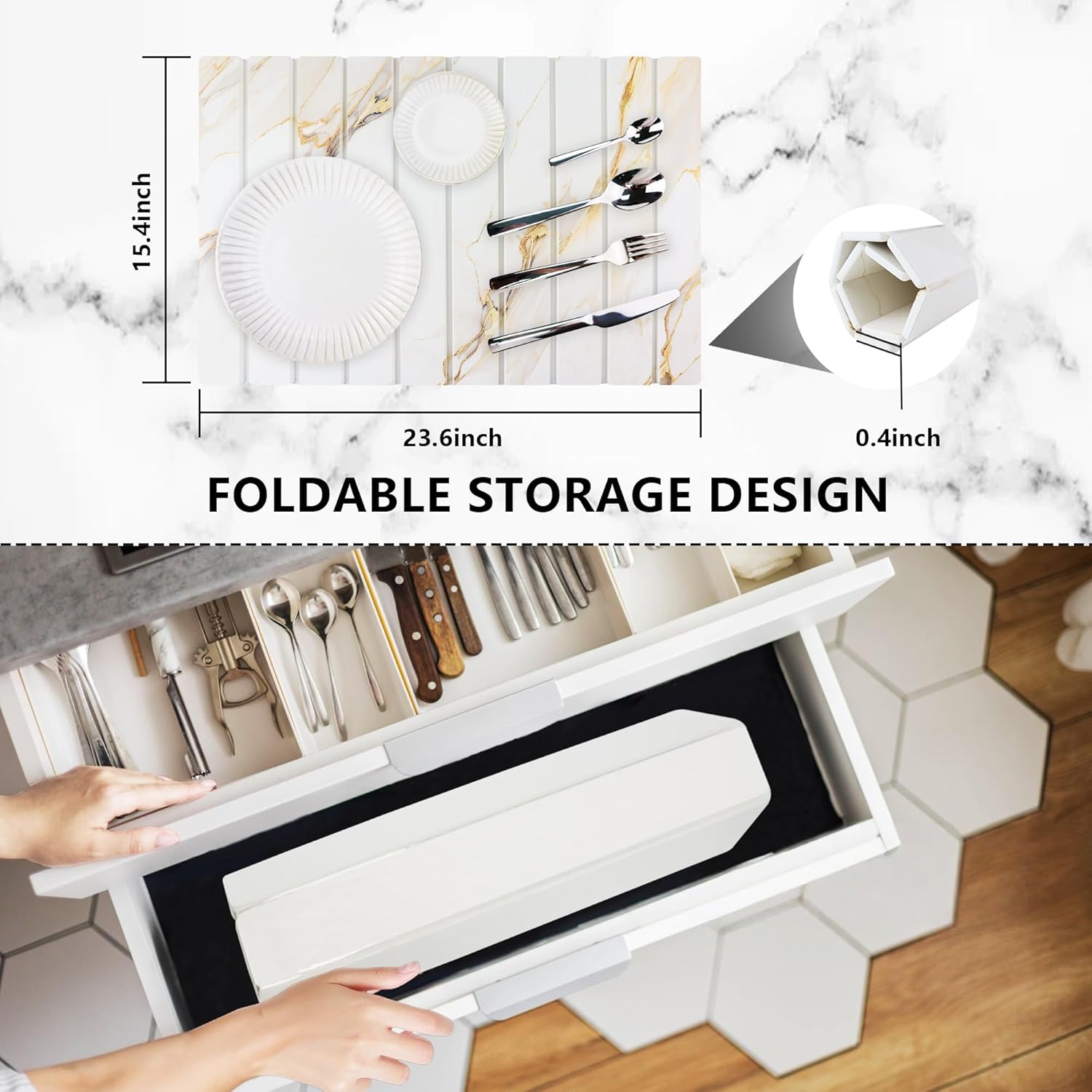 - Related accessory parameters: The unfolded size of our dish drying mats for kitchen counter is 23.6 inches * 15.4 inches, and can be rolled into a roll of 15.4 inches * 4.7 inches * 4.7 inches after folding, which is convenient for storage. We also considerately equip you with a 17.7 inches * 13.7 inches anti-slip mat and sandpaper with a diameter of 2.95 inches for dealing with stains, as well as an instruction manual.