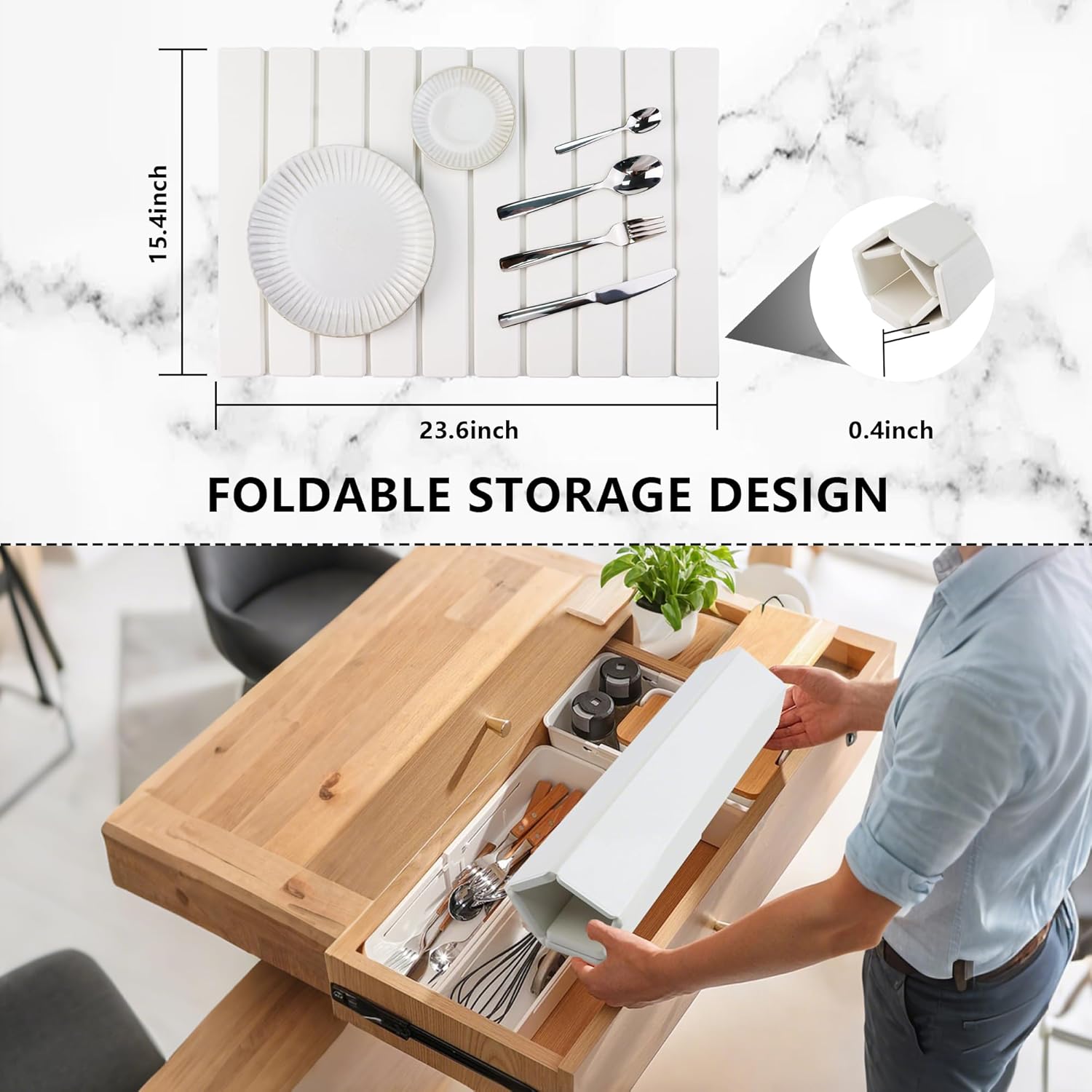 - Related accessory parameters: The unfolded size of our dish drying mats for kitchen counter is 23.6 inches * 15.4 inches, and can be rolled into a roll of 15.4 inches * 4.7 inches * 4.7 inches after folding, which is convenient for storage. We also considerately equip you with a 17.7 inches * 13.7 inches anti-slip mat and sandpaper with a diameter of 2.95 inches for dealing with stains, as well as an instruction manual.