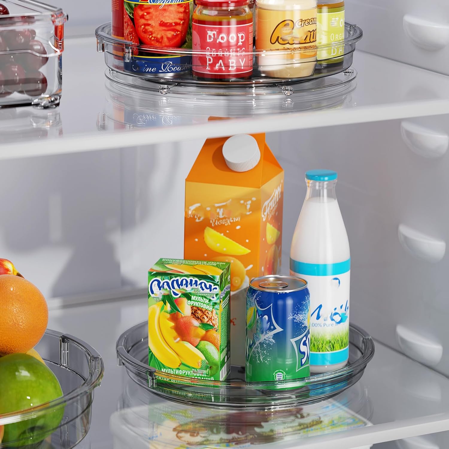 - 360° Rotatable for Easy Access: Our Lazy Susan for refrigerator with a reinforced base rotates 360° smoothly and is stable. No more reaching deep into cabinet spaces; you can easily find items from the back without knocking