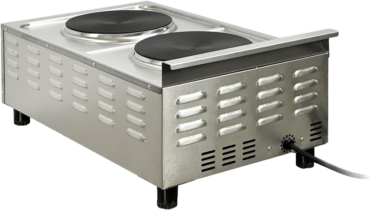 Commercial Double Hot Plate, 3600W Electric Burner, 9-inch Cast Iron Plates, 6 Heat Settings, Stainless Steel Construction FG-02A ETL