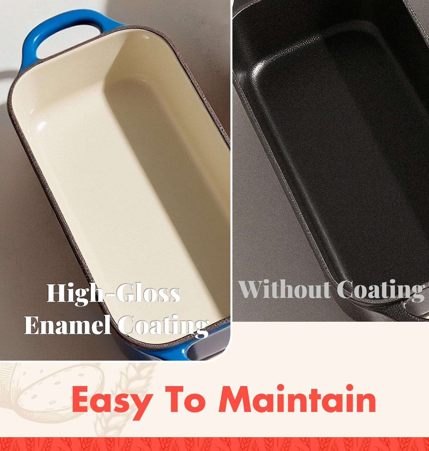 - 【Ideal Gift for Baking Lovers】This 3.4QT loaf pan is perfect for 1-3 people, Ideal for small families. No matter it's Christmas, Halloween, Mother's Day, or Father's Day, this enamel cast iron bread pans is the perfect gift for beginners or experienced bakers. Have fun baking time with family and friends!