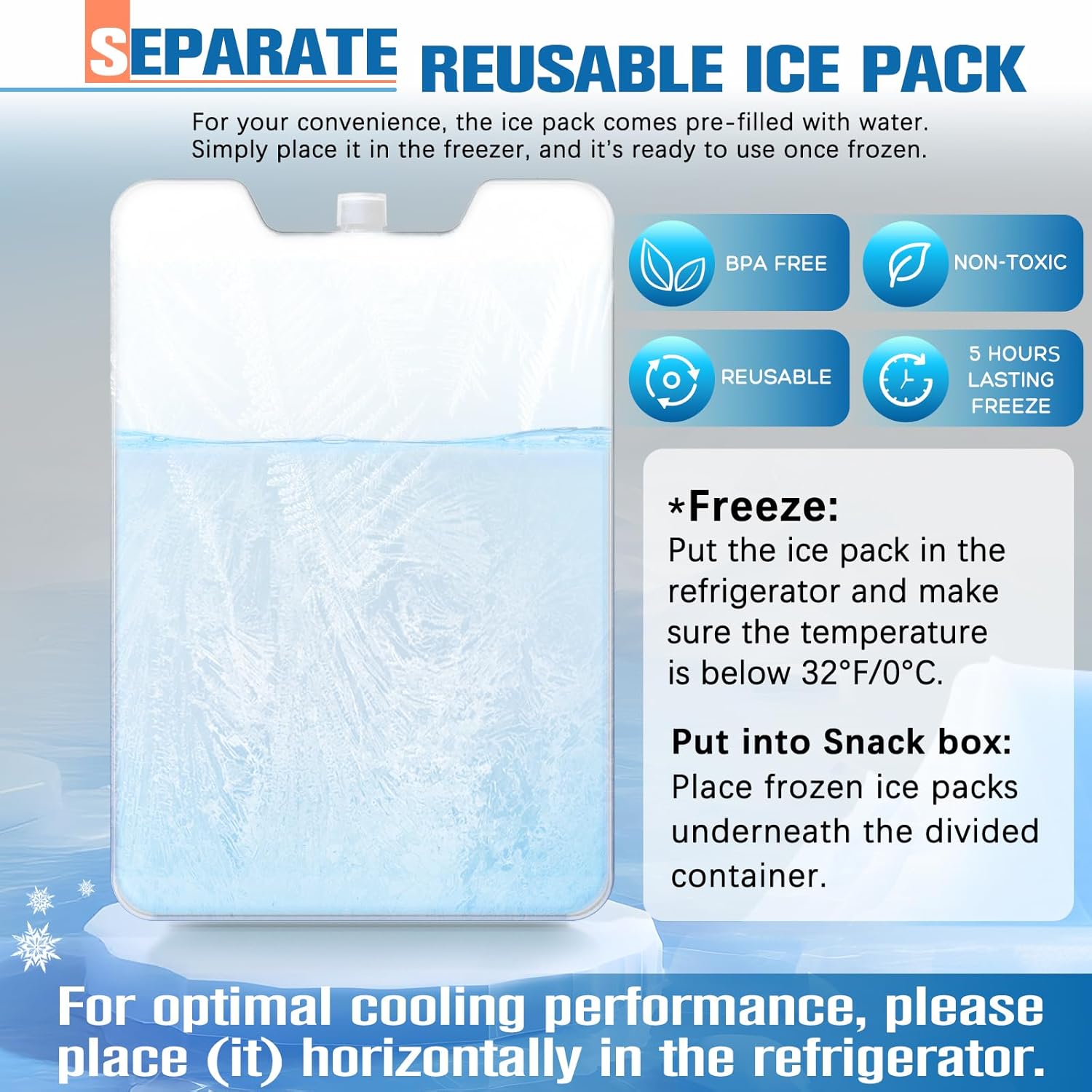 - 【Effortless eco Cooling】Freeze, pack, and go! Extends freshness, so you can enjoy healthier snacks on the go. Reduce food waste by keeping your food fresh (For your convenience, the ice pack comes pre-filled with water. Simply place it in the freezer, and it’s ready to use once frozen.)