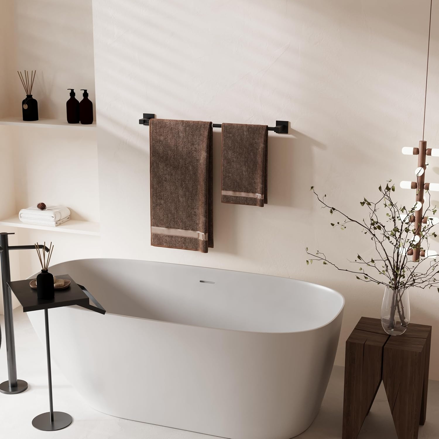 - 【Adjustable Size】 -- The towel bar can be easily adjusted from 14.4inch to 25.2inch, making it perfect for most bathroom spaces. It can easily hold multiple towels or robes, helping to keep your bathroom organized and tidy