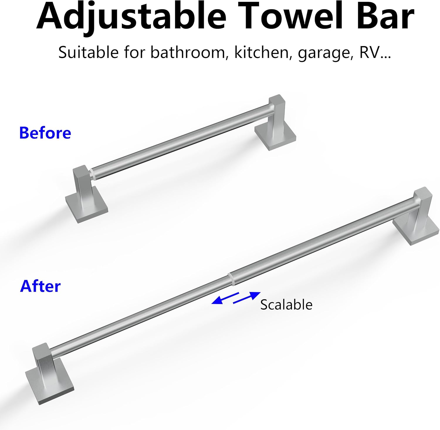 Adjustable Towel Bar, 14.4inch - 25.2inch Towel Rack, Wall Mounted for Bathroom, Kitchen Hand Towel Holder Cloths Hanger SUS 304 Stainless Steel Organizer Single Bar (Brushed Nickel)
