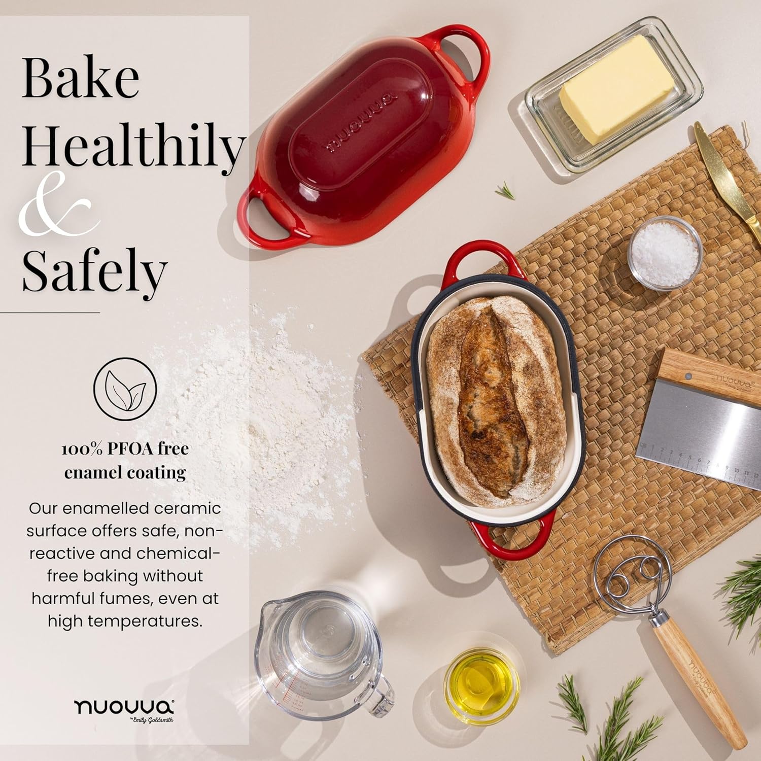 - DURABLE TRIPLE-LAYER ENAMEL: This enamelled cast iron bread loaf pan by Nuovva is constructed with a reinforced 3-layer enamel coating for extraordinary stability. 16cm x 24cm without handles and 31cm with handles, the chip-resistant finish ensures consistent use for years, ideal for everyday baking. Perfect for those who want long-term performance in their kitchen!