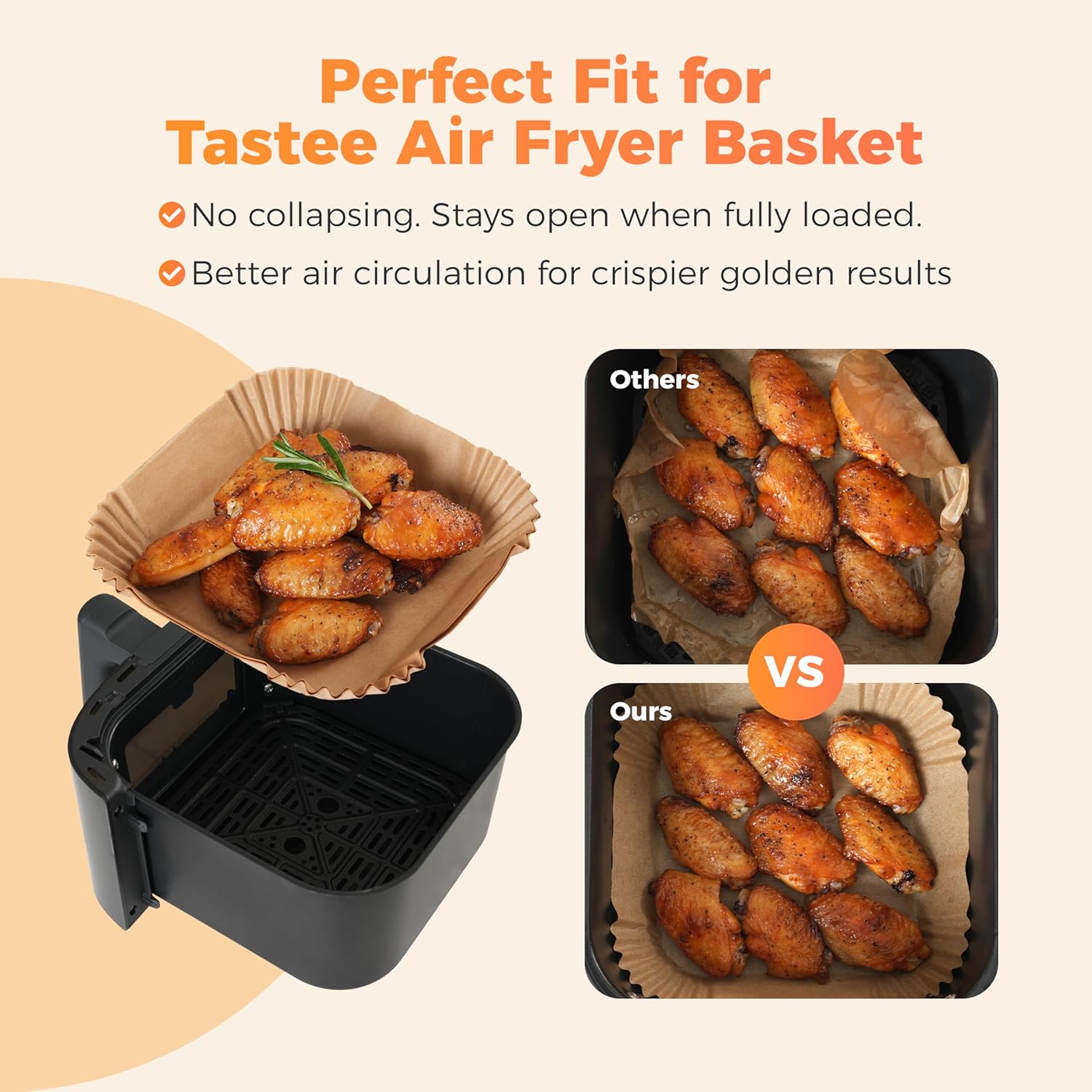 Tastee Air Fryer Liners 100Pcs - Design for 3-6QT Air Fryer Baskets, Oil-Absorbent Disposable Paper Liners, 450°F Heat Resistant, Custom Fit